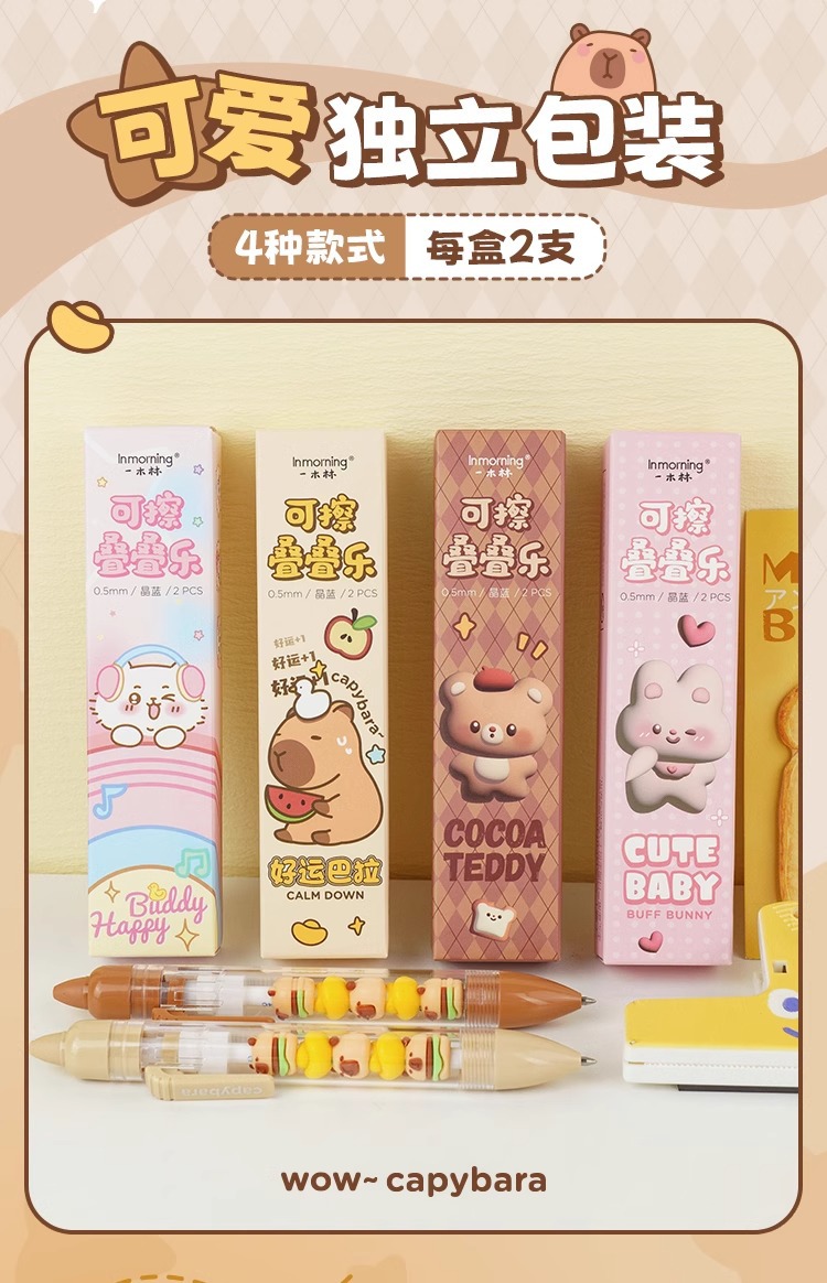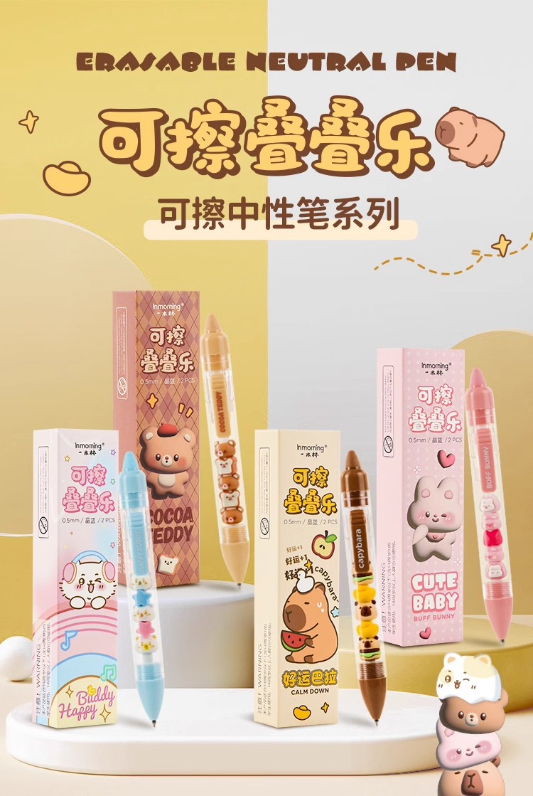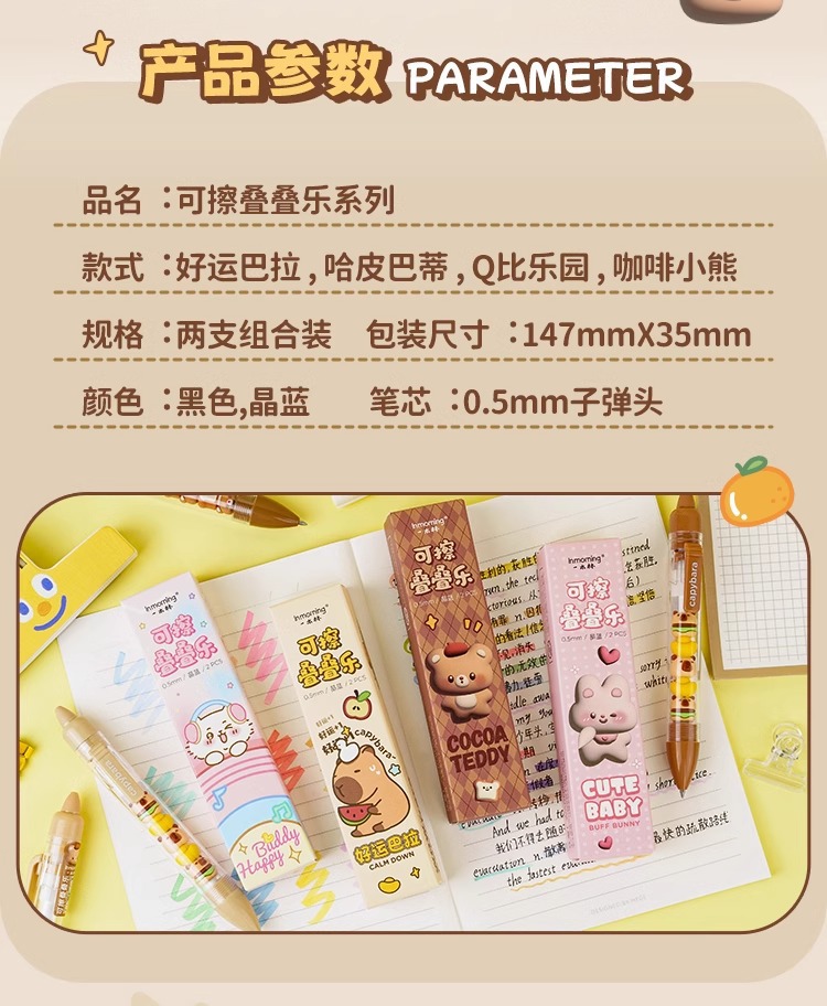 一木林按动可擦笔叠叠乐三年级摩易擦学生卡通晶蓝可擦中性笔热敏