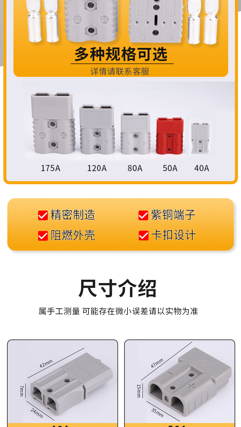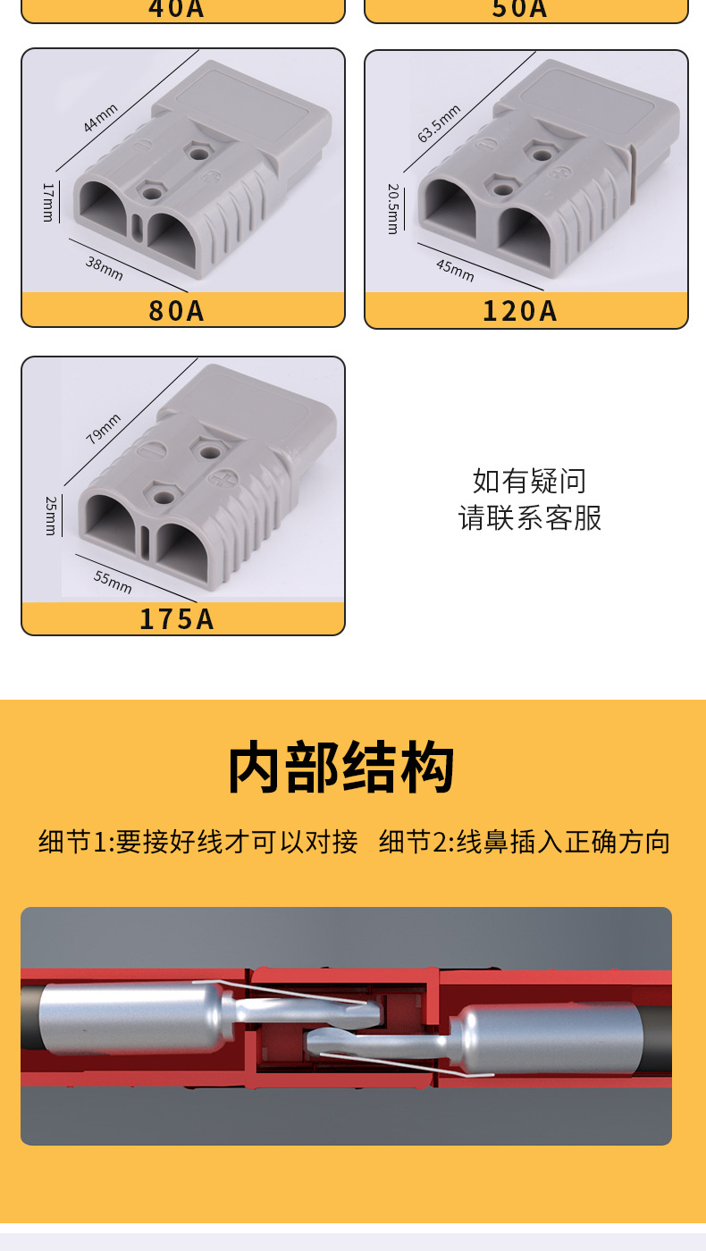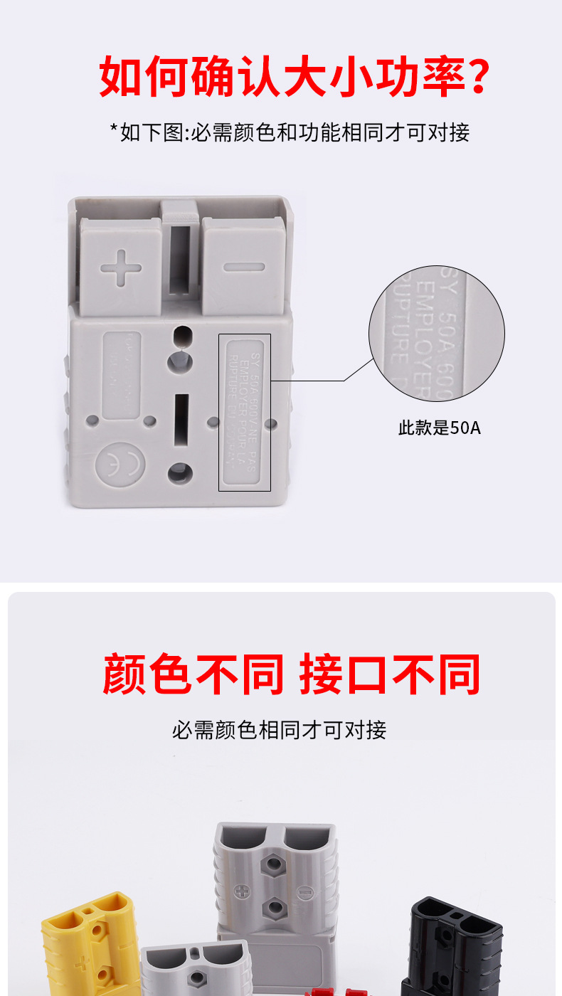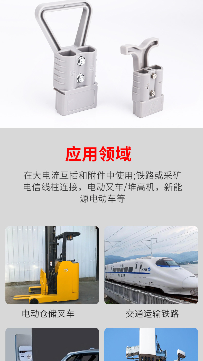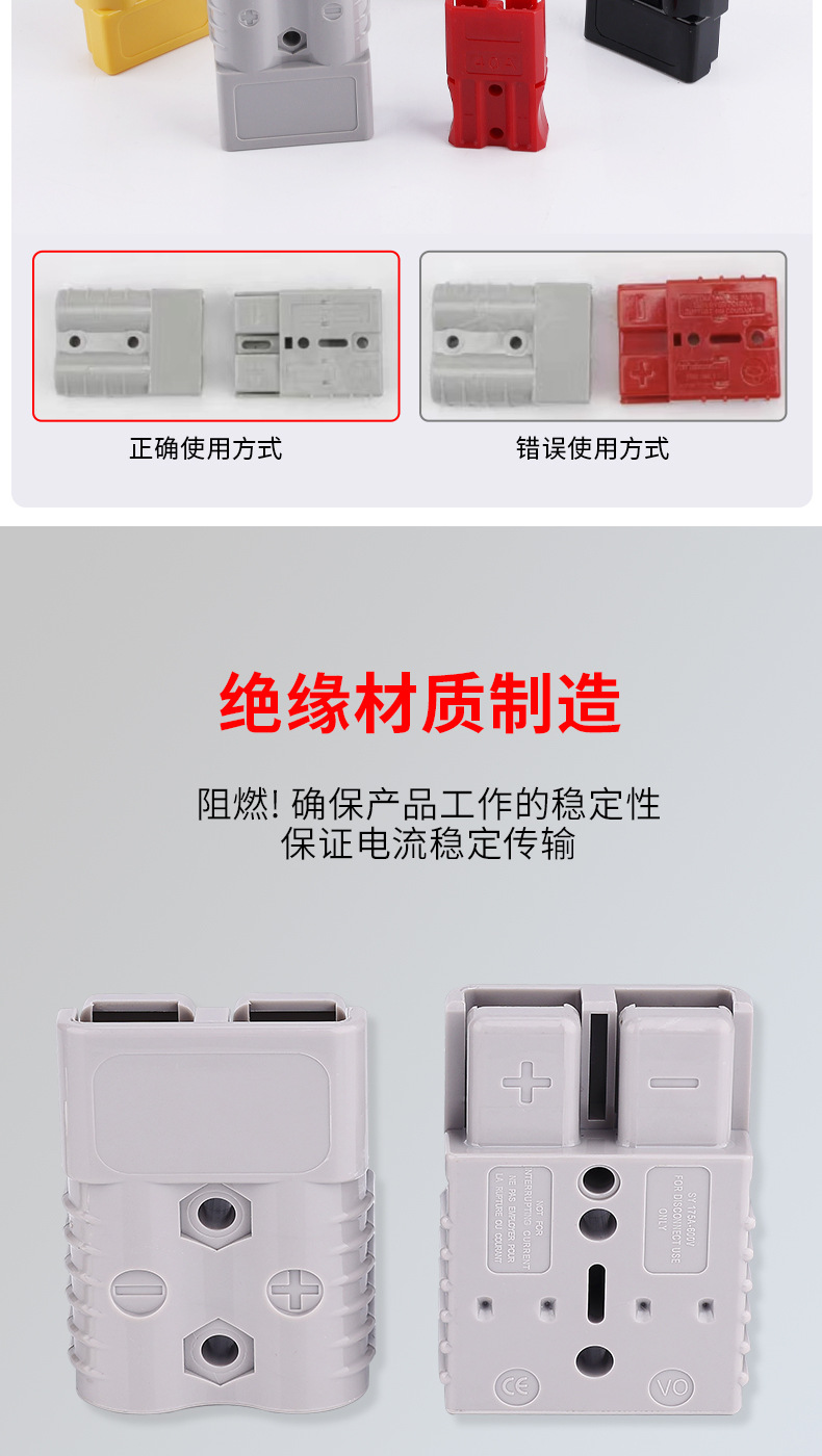 电动叉车蓄电池充电 安德森插头电瓶连接器40A 50A 80A120A接插件