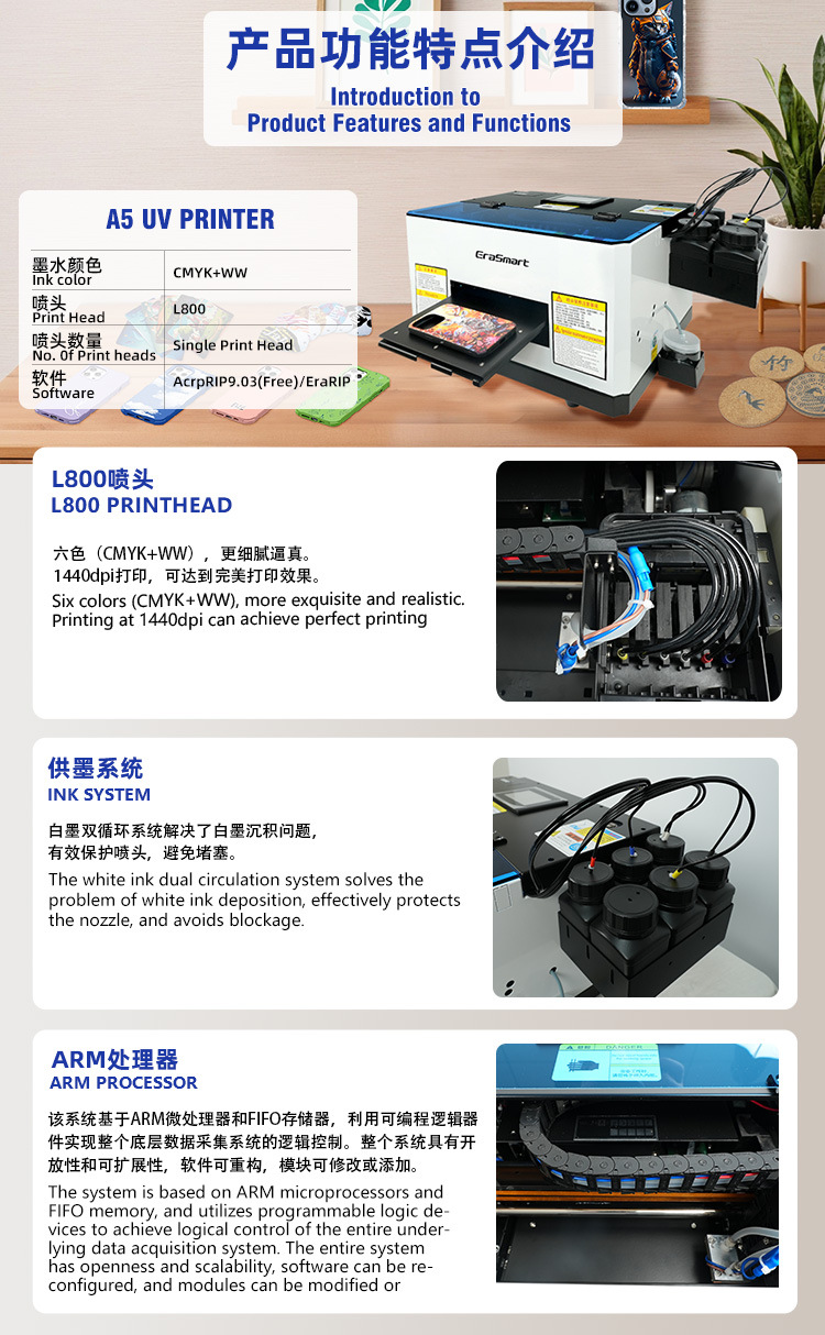 Printer EraSmart A5uv, printer universal kecil untuk casing ponsel, akrilik, logam, ubin, dan tablet