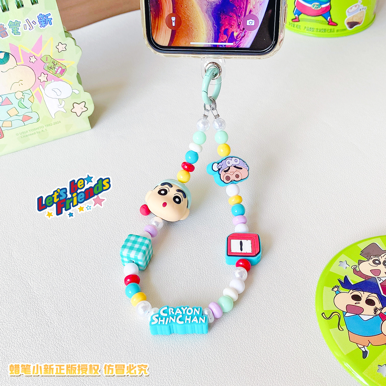正版卡通蜡笔小新手机珠链可爱创意挂饰汽车包包钥匙链挂件小礼品