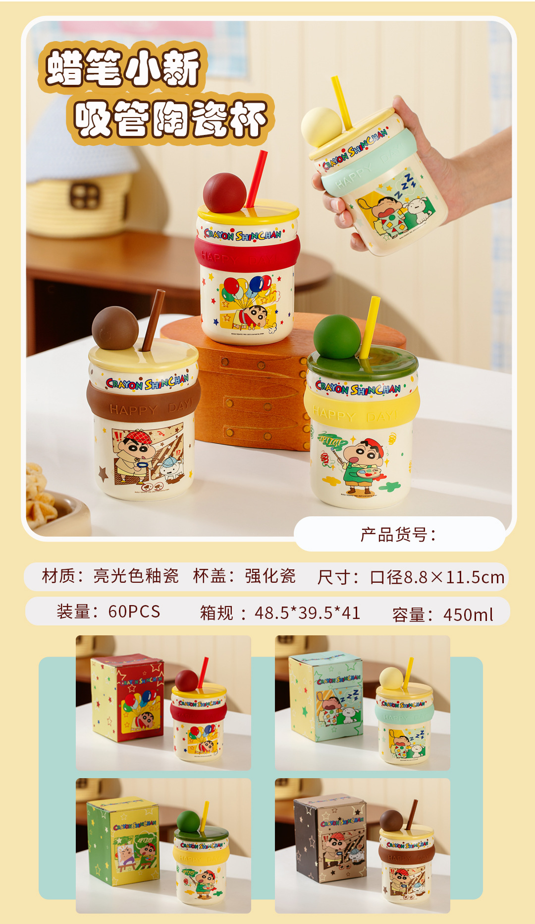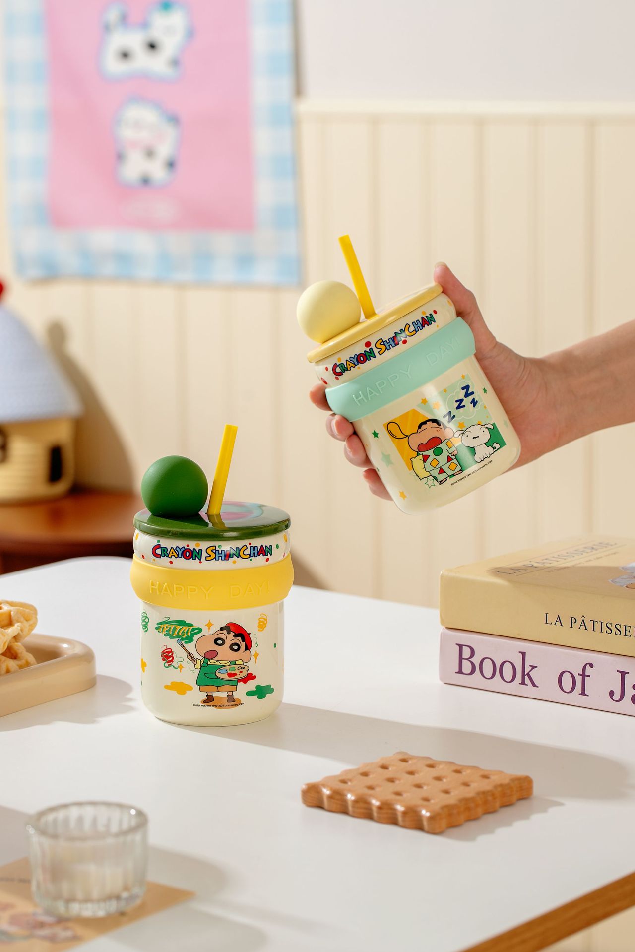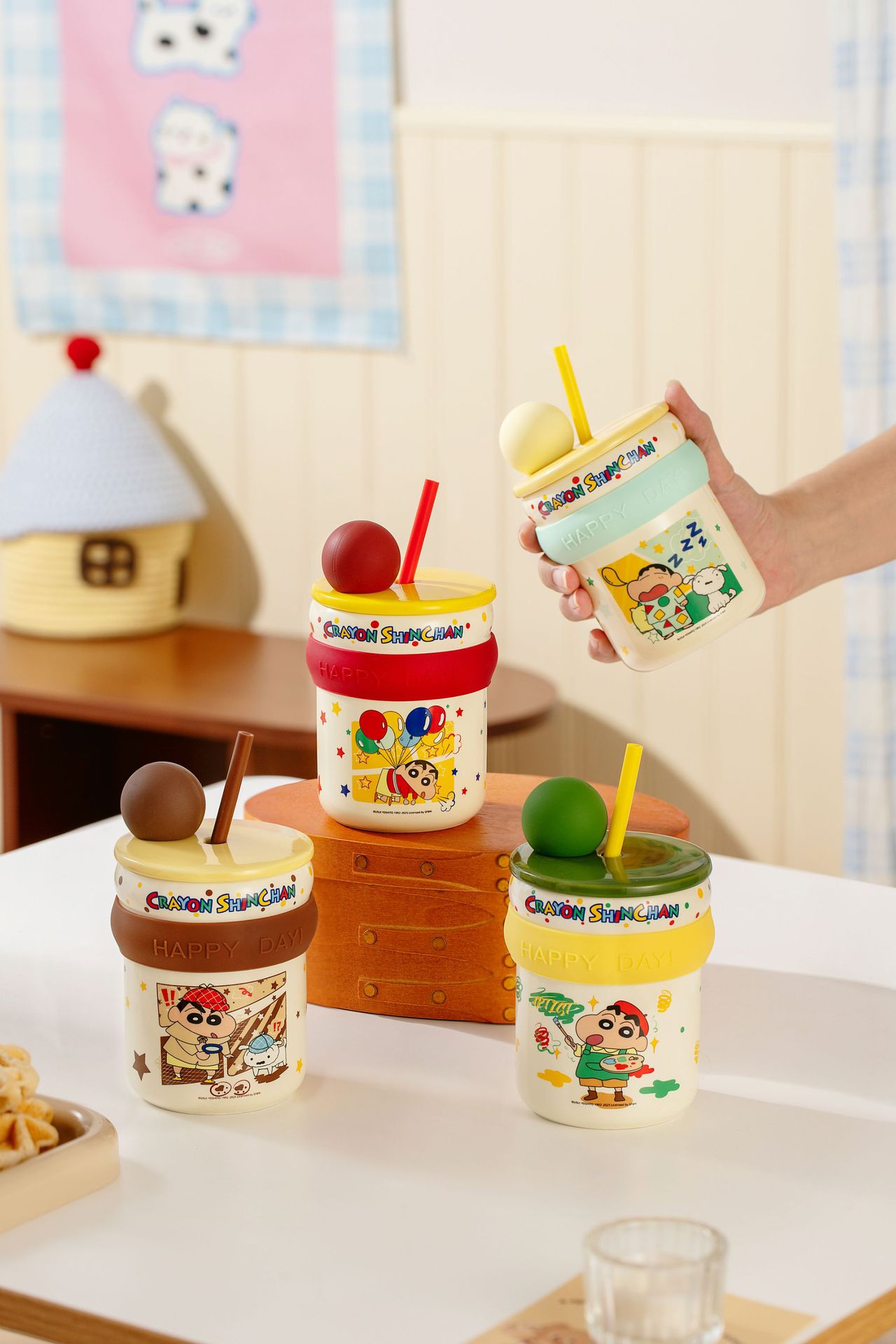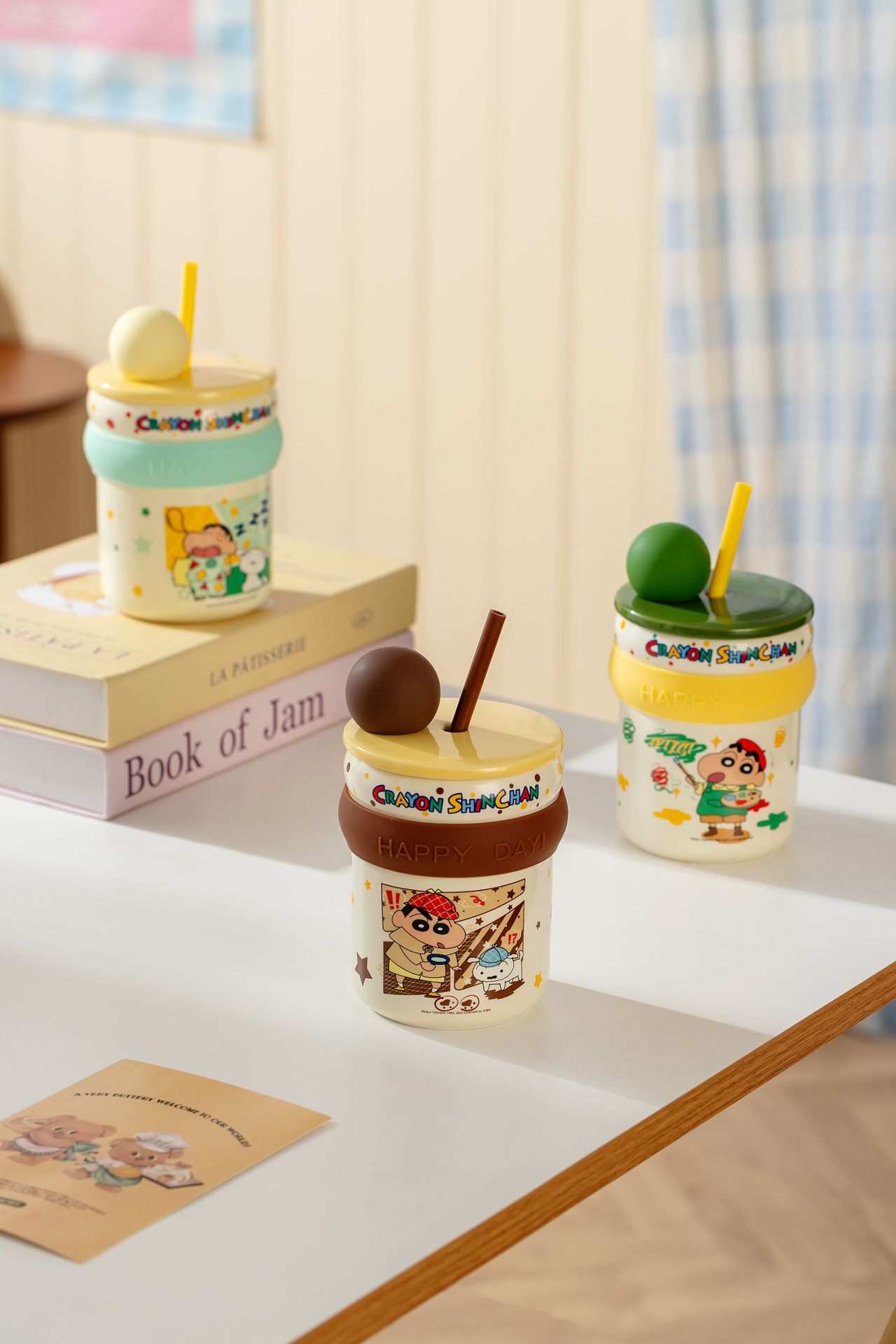 可爱蜡笔小新陶瓷马克杯高颜值带盖水杯送女生生日礼物闺蜜伴手礼