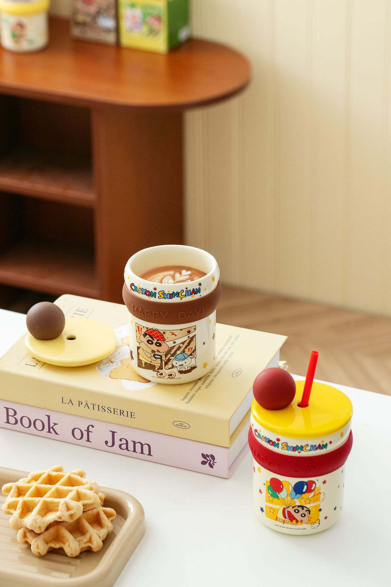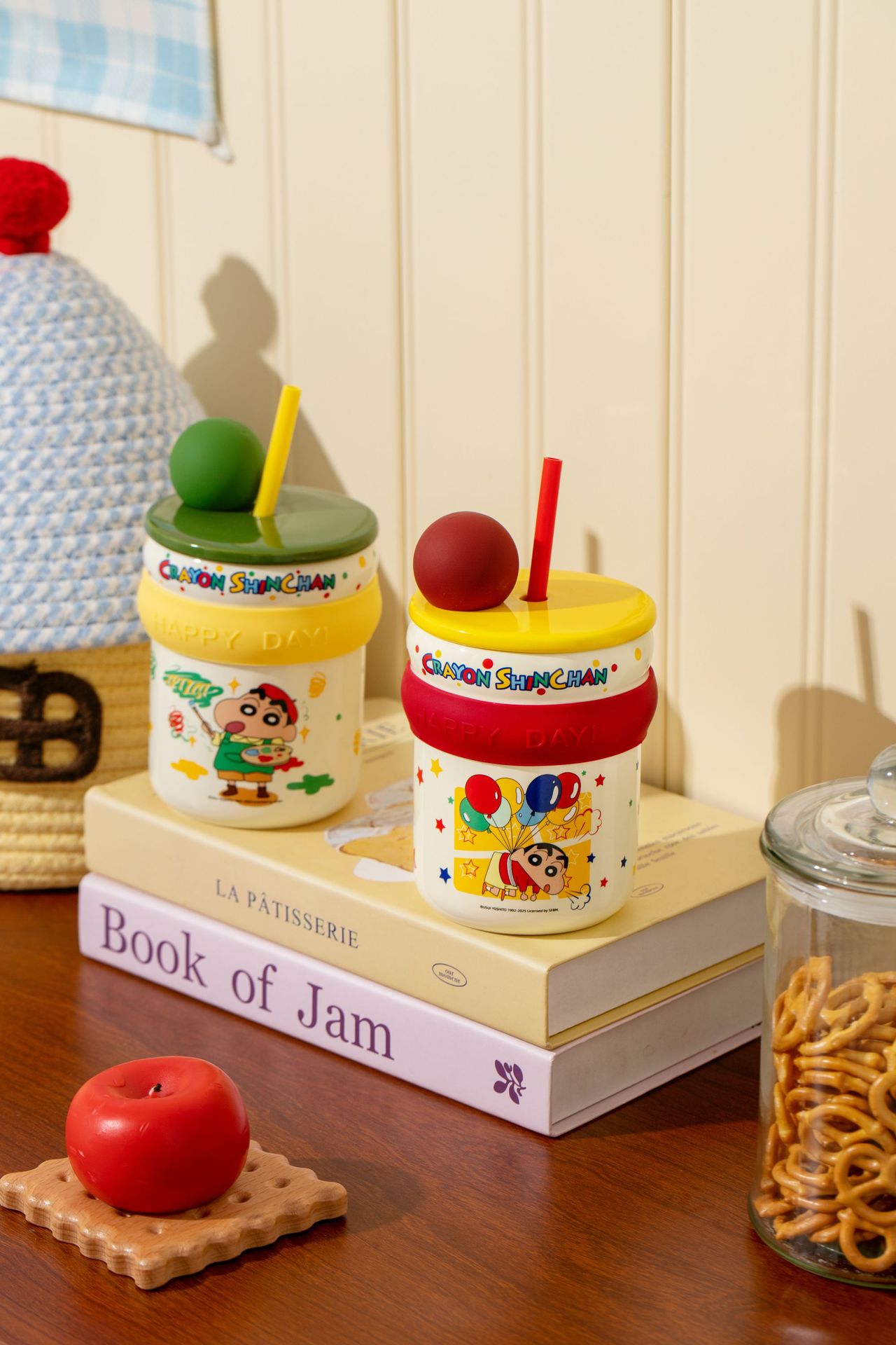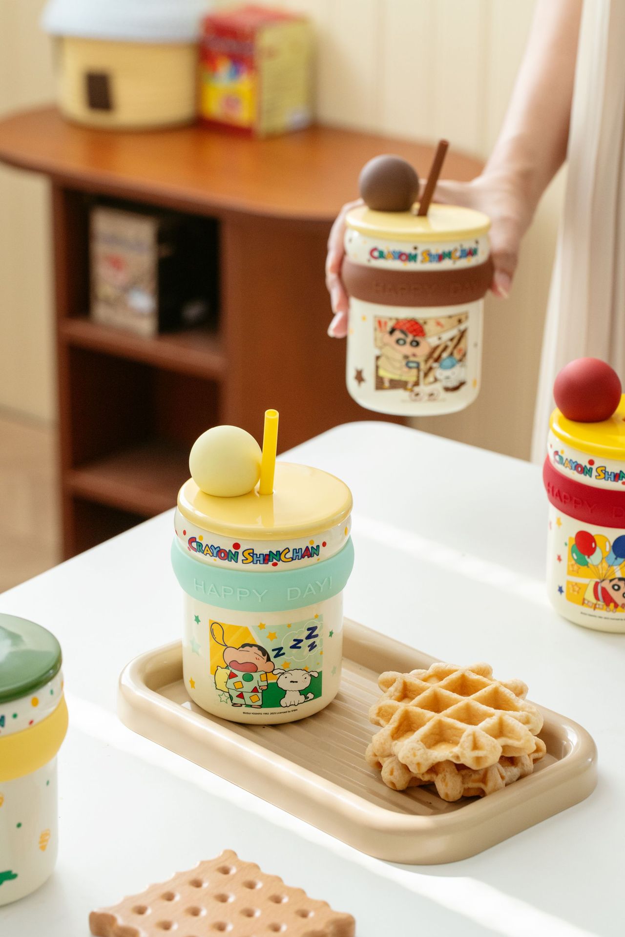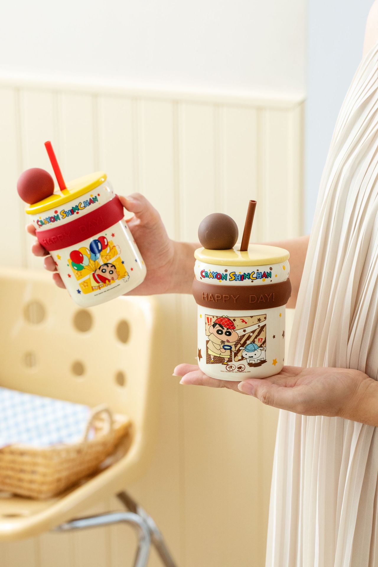 可爱蜡笔小新陶瓷马克杯高颜值带盖水杯送女生生日礼物闺蜜伴手礼