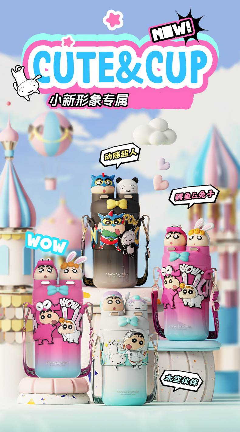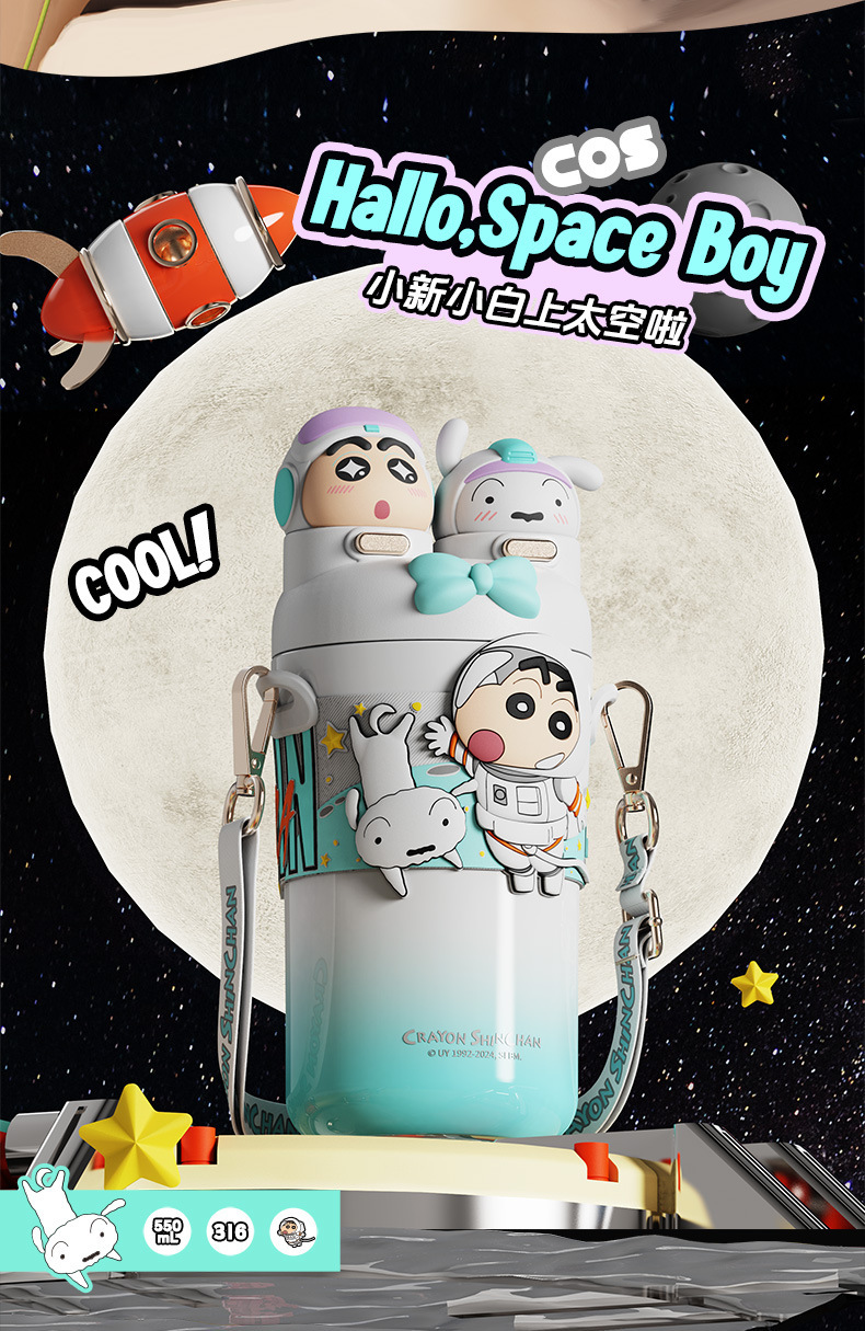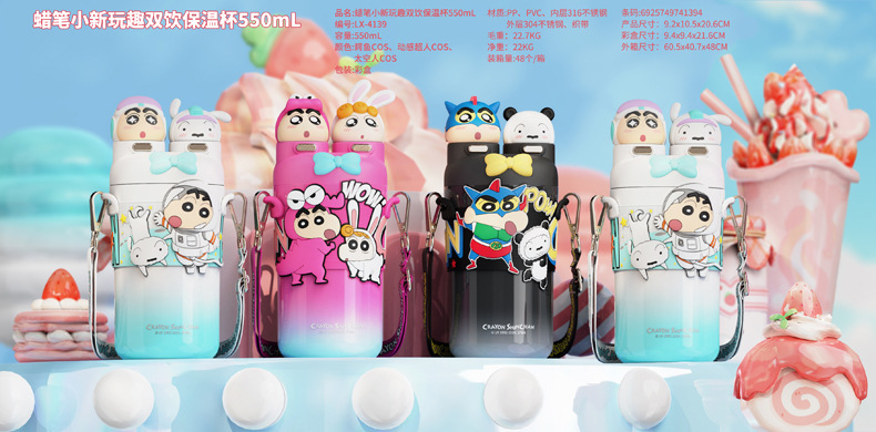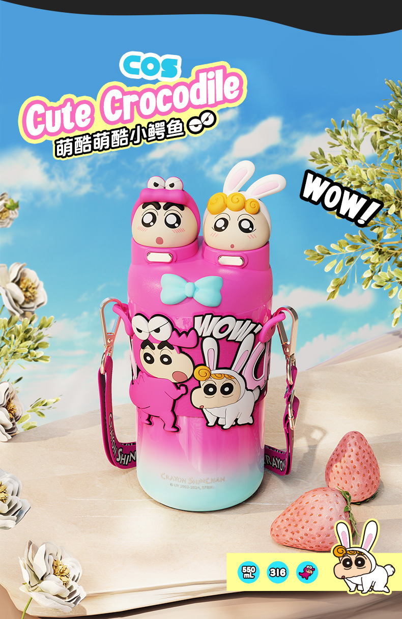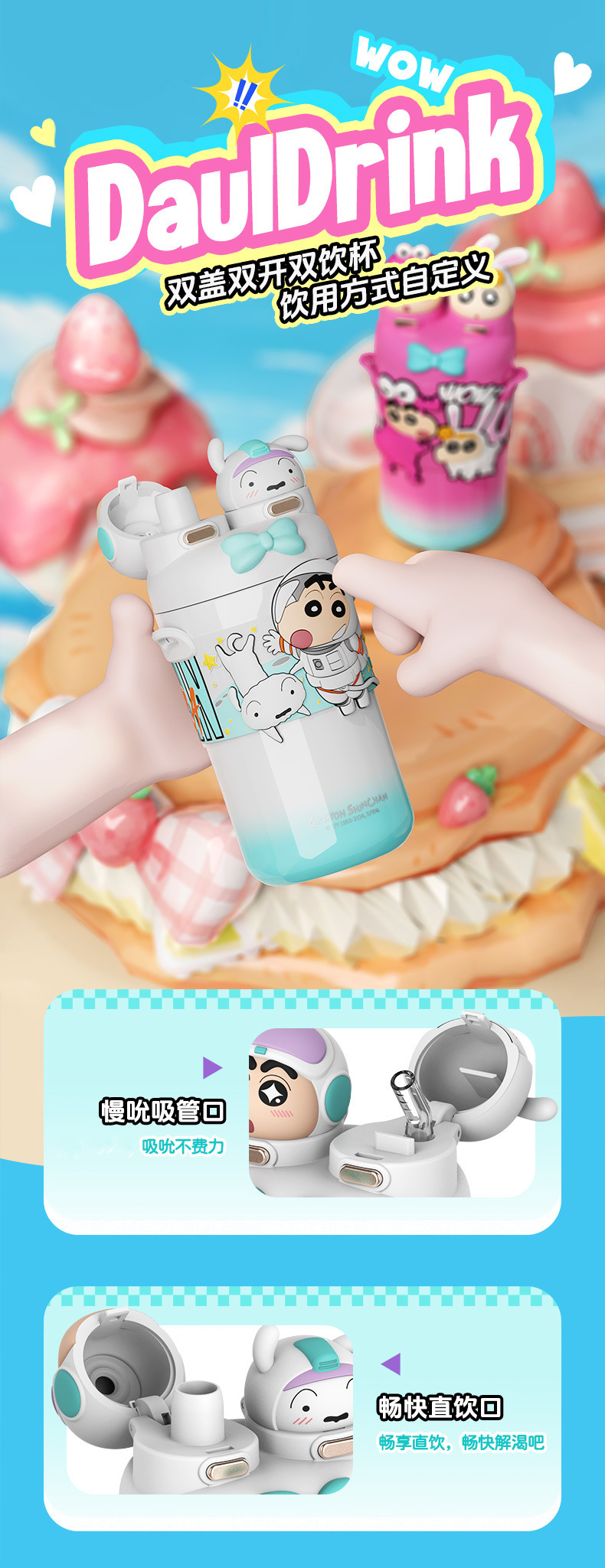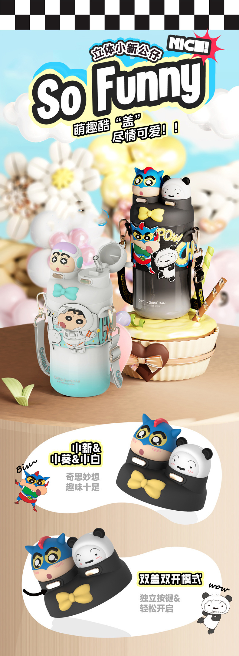蜡笔小新保温杯316不锈钢双饮杯可爱大容量水杯ins风水壶高颜值杯