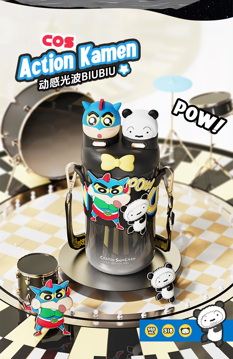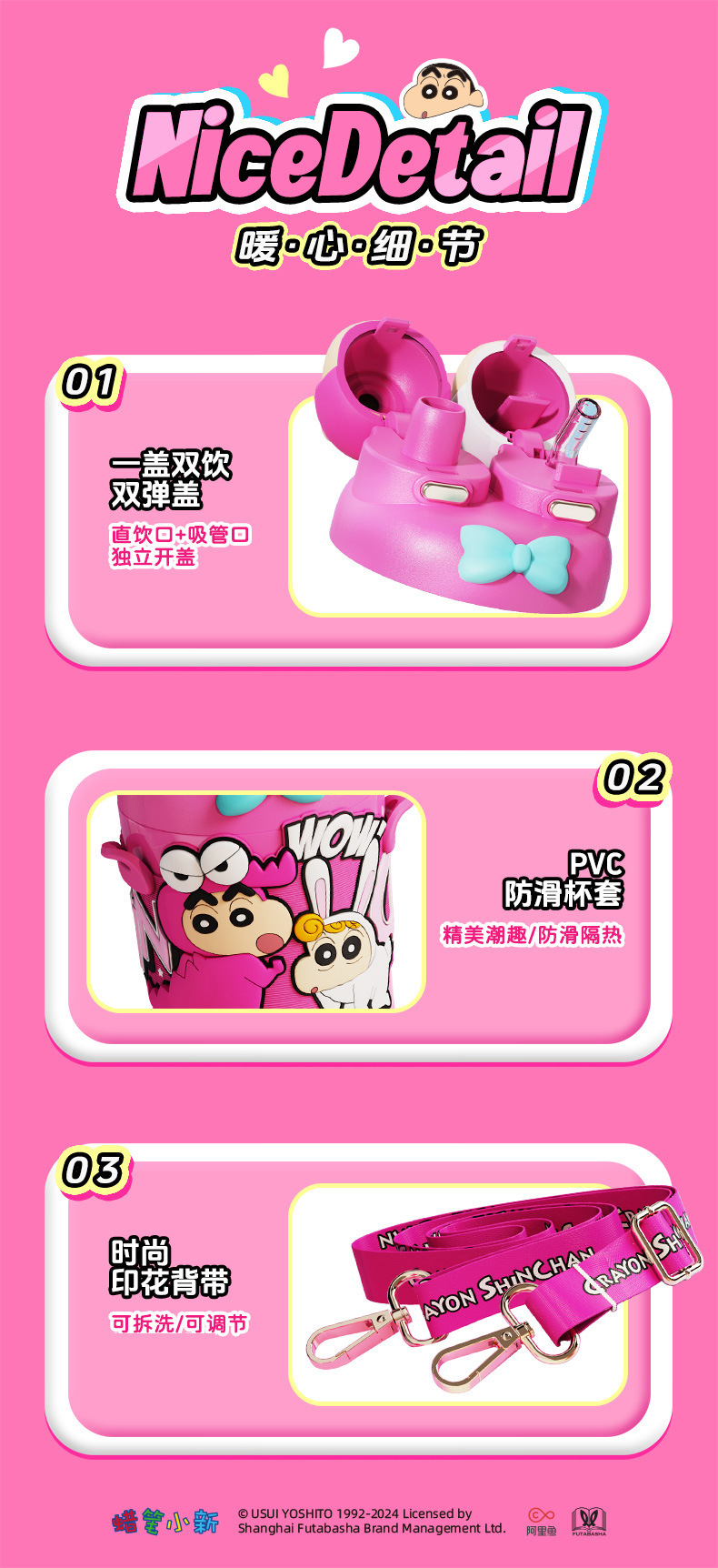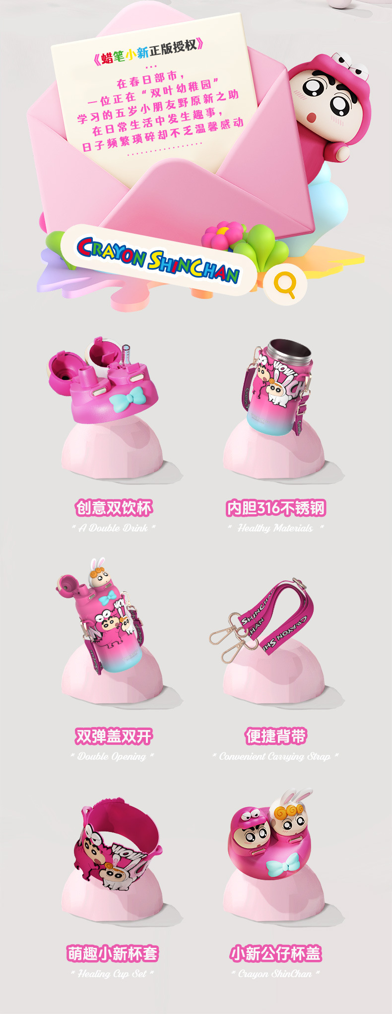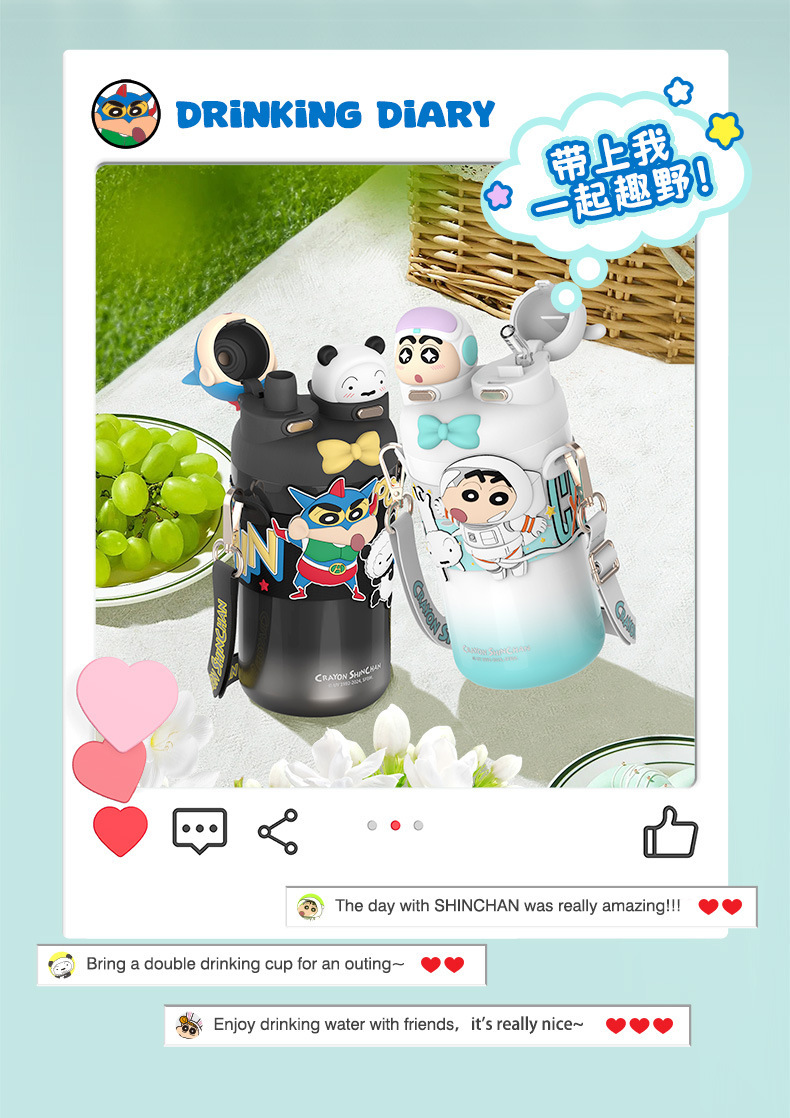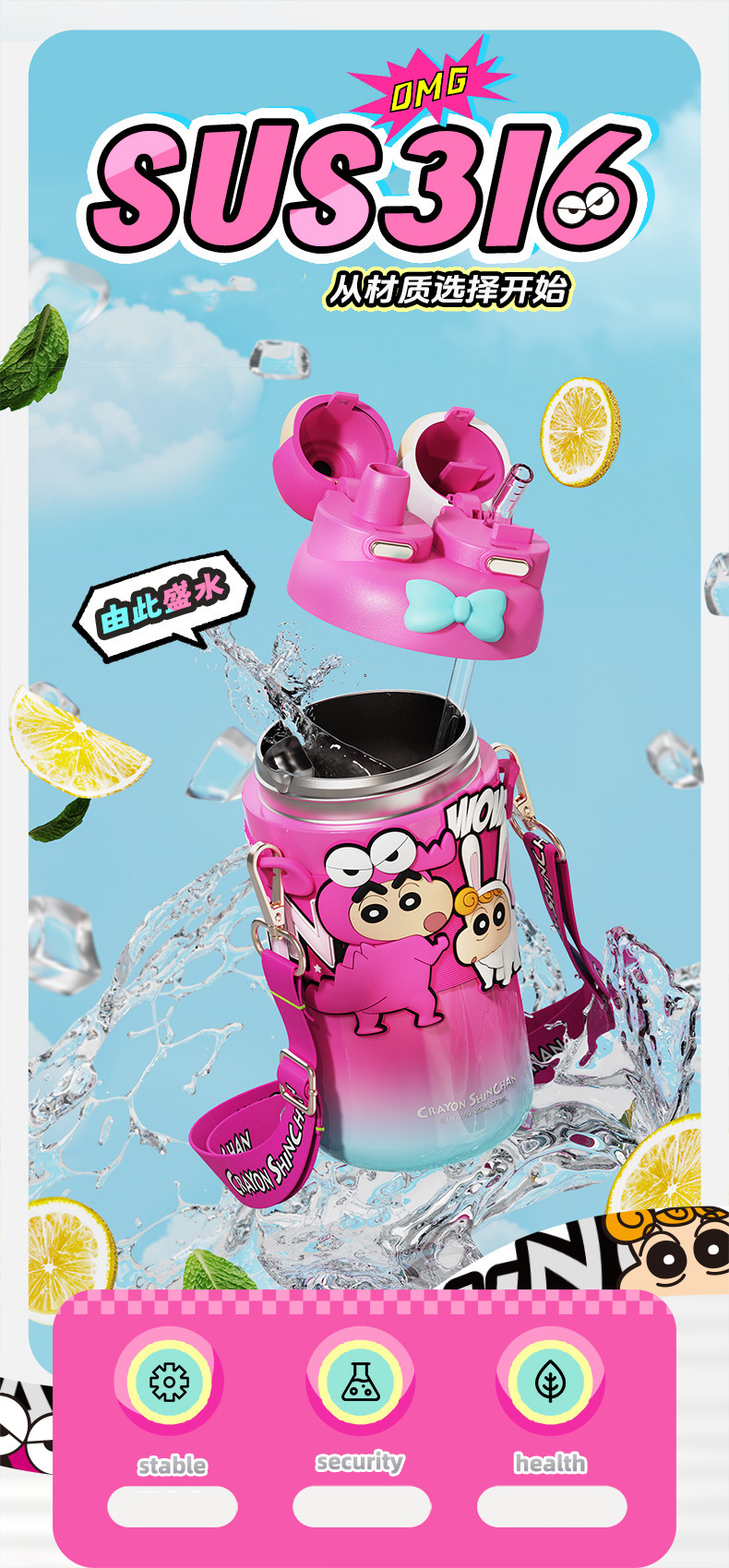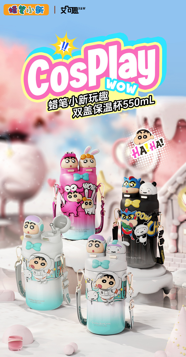 蜡笔小新保温杯316不锈钢双饮杯可爱大容量水杯ins风水壶高颜值杯