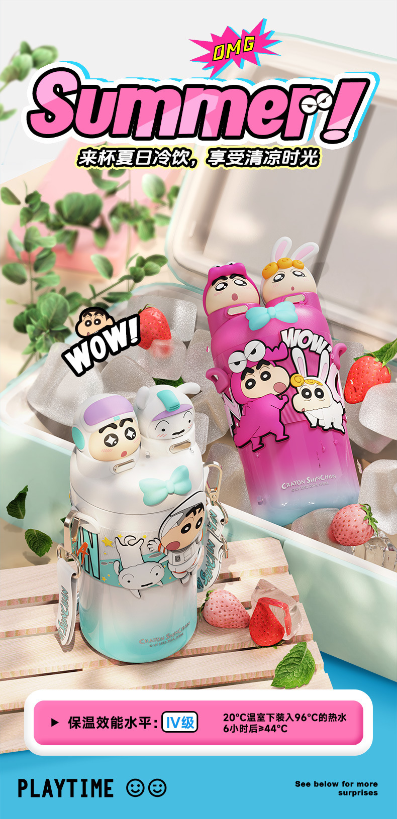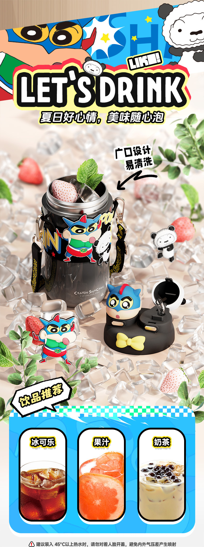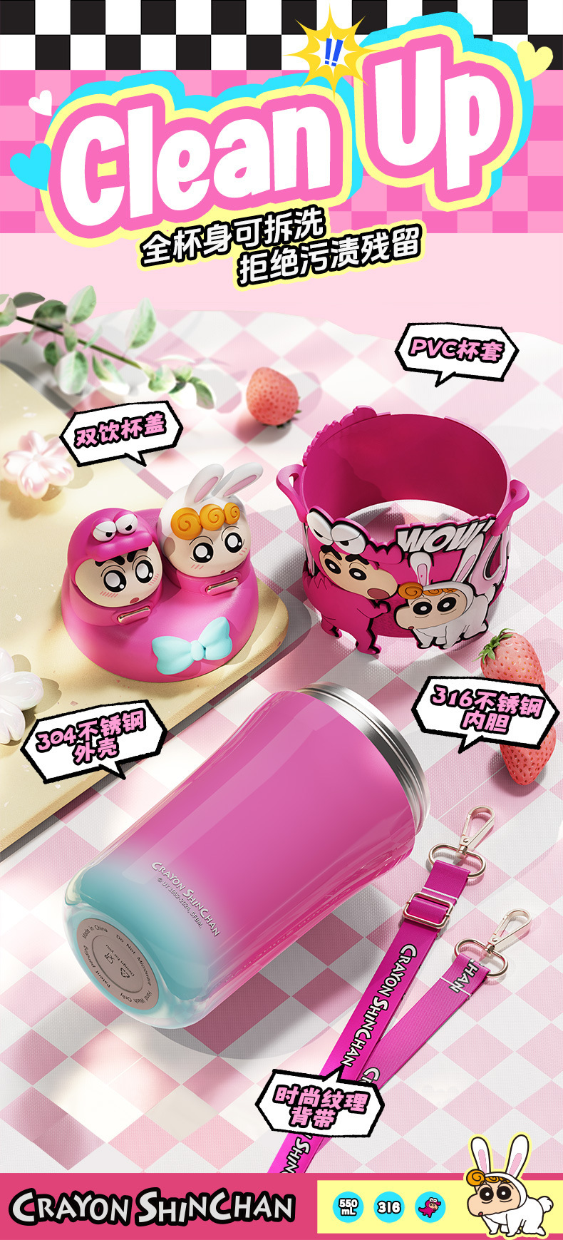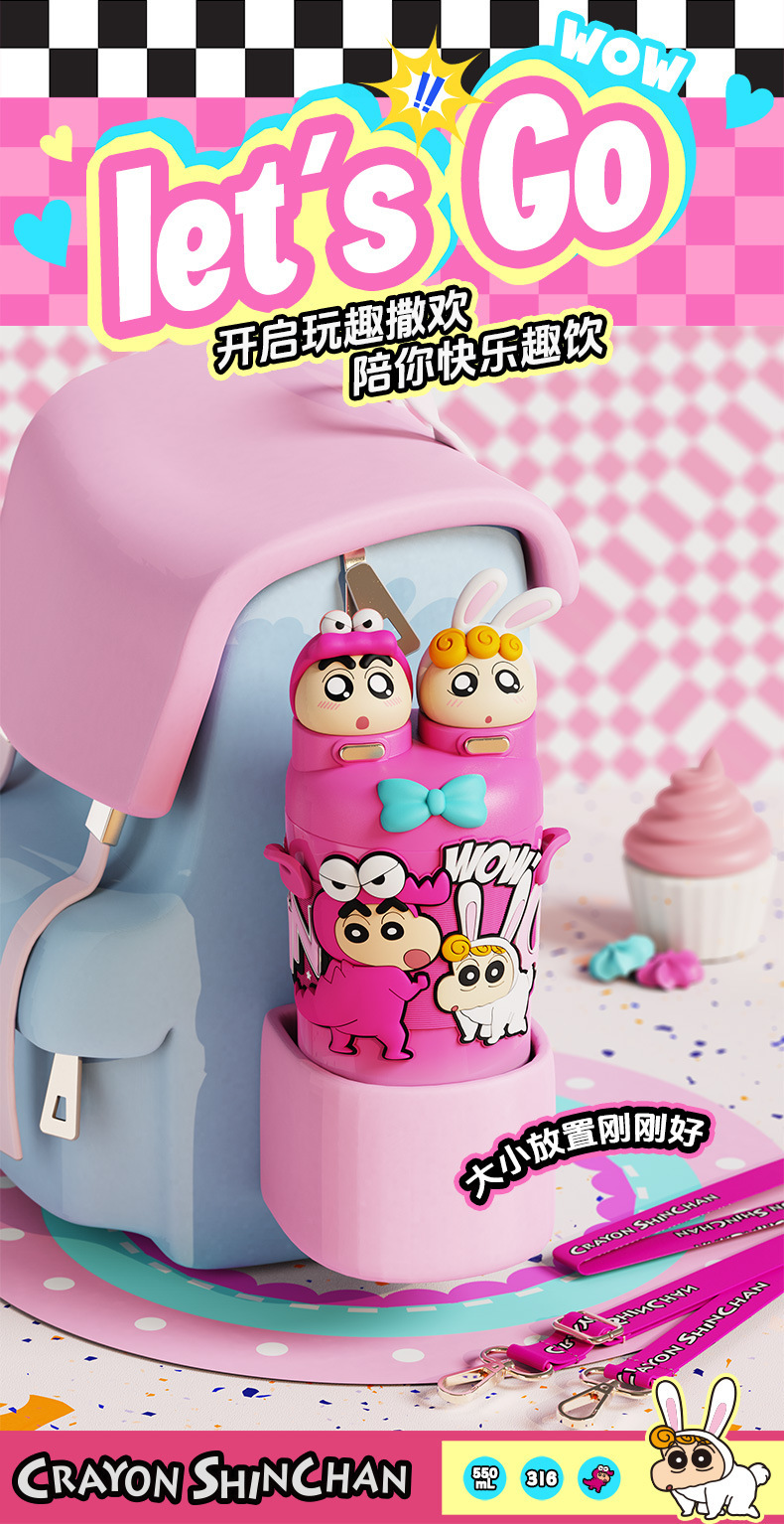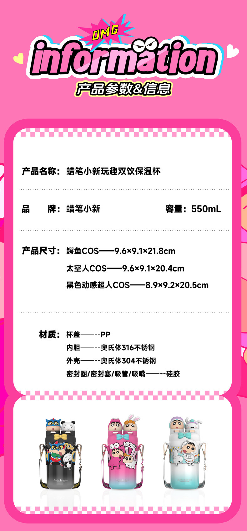 蜡笔小新保温杯316不锈钢双饮杯可爱大容量水杯ins风水壶高颜值杯