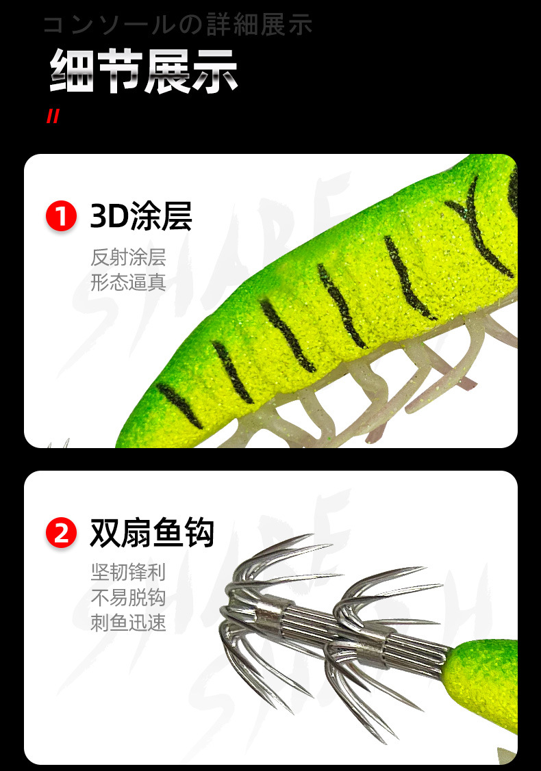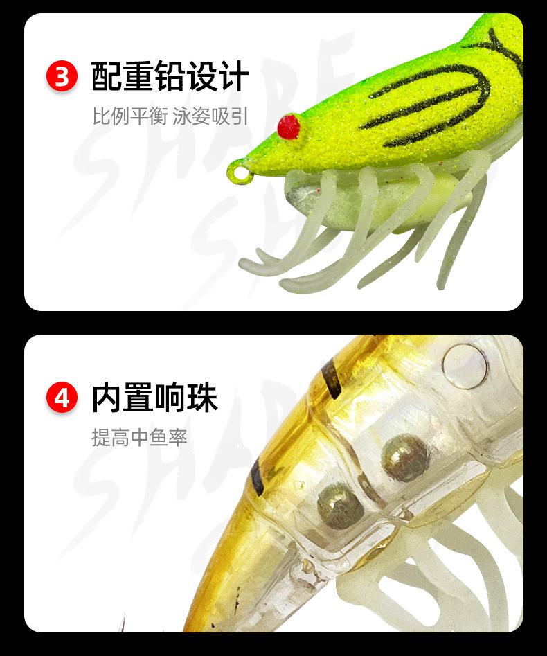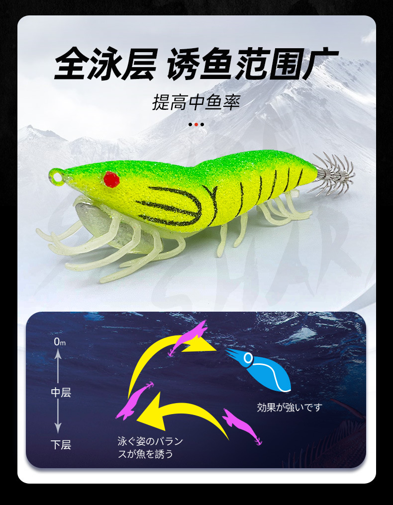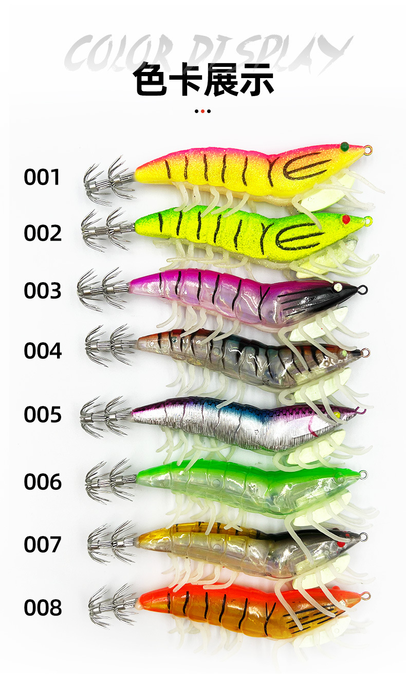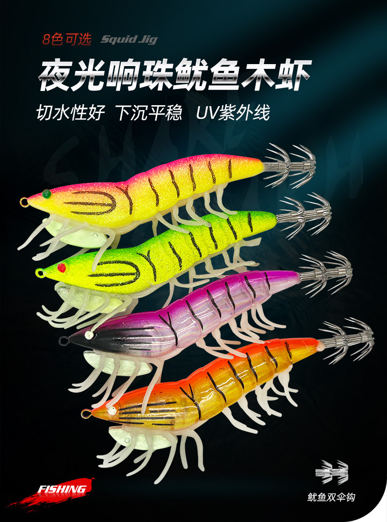 Umpan cumi-cumi udang kayu bercahaya, dengan cincing manik-manik kaki lembut udang Luya memancing laut umpan palsu kait cumi-cumi
