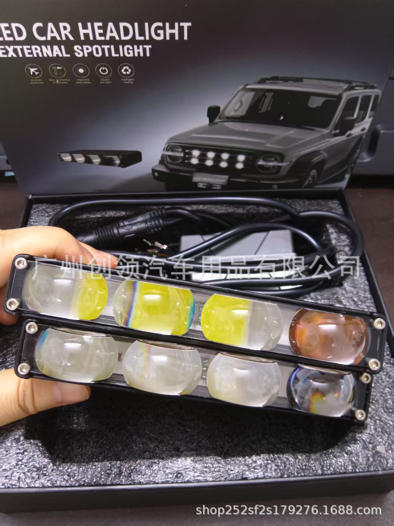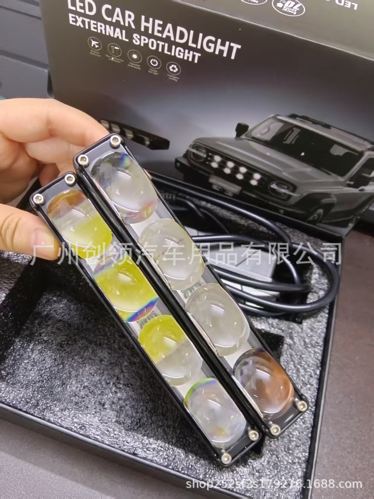 新款汽车格栅灯中网射灯汽车LED中网黄白双色聚光越野车加装