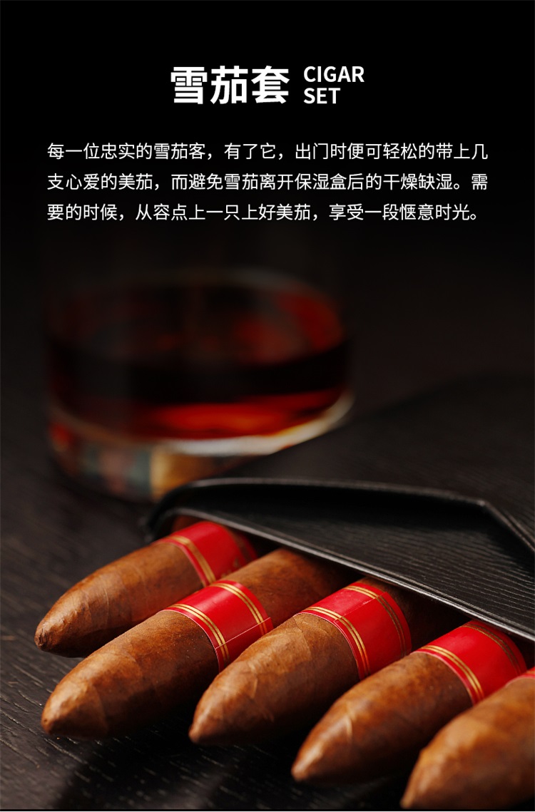 雪茄套牛皮革保湿套便携雪松木三支装 CLH-21BW1