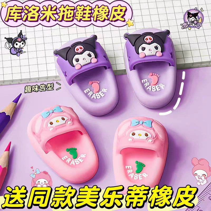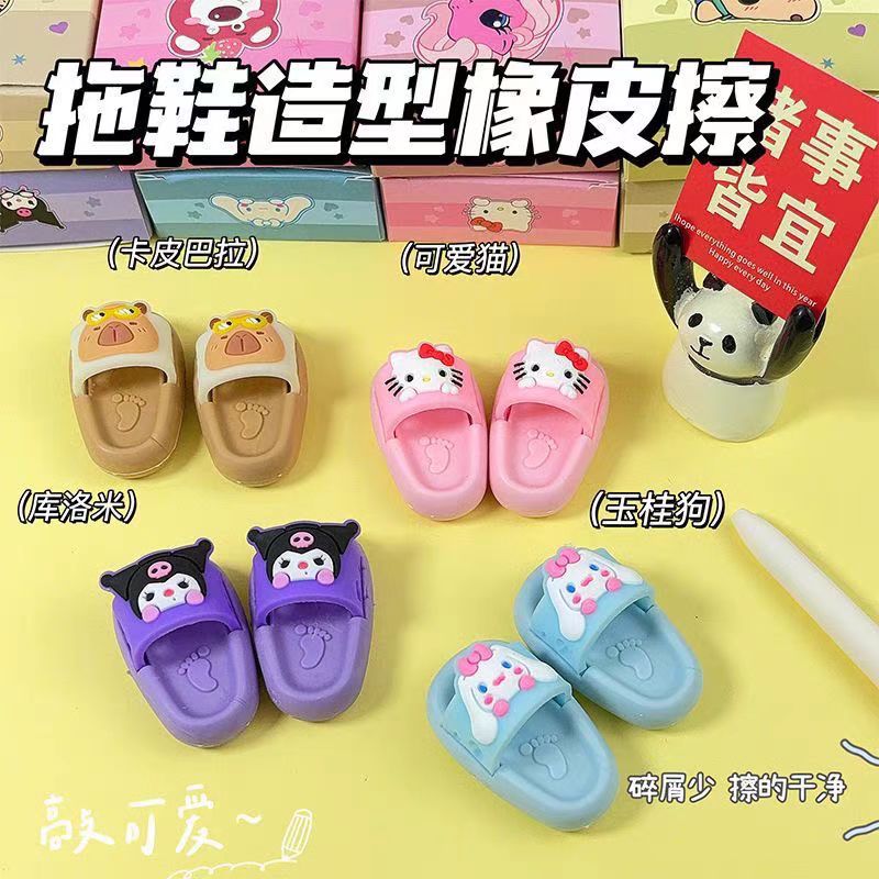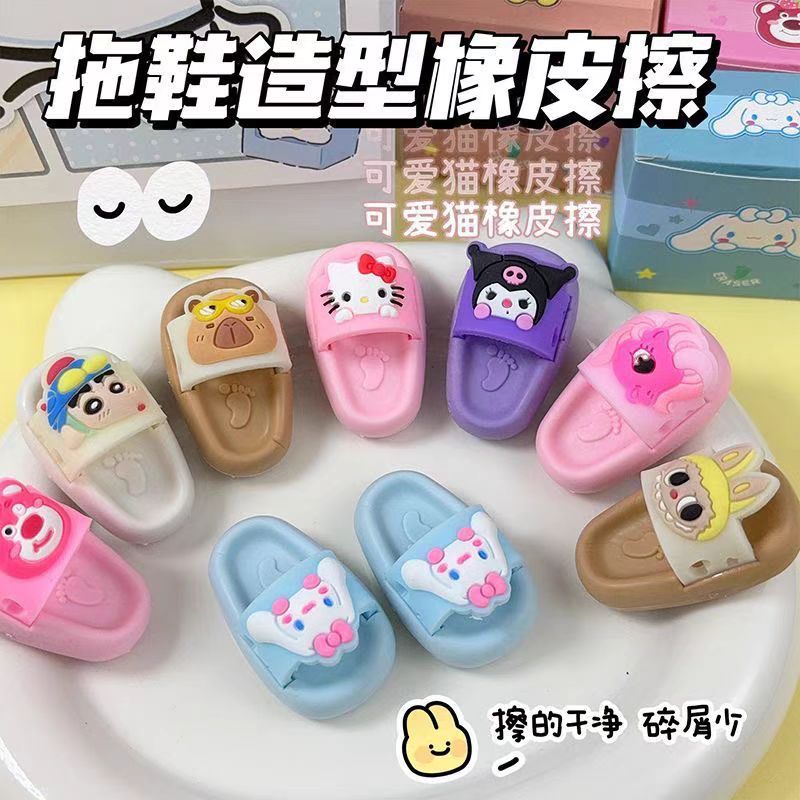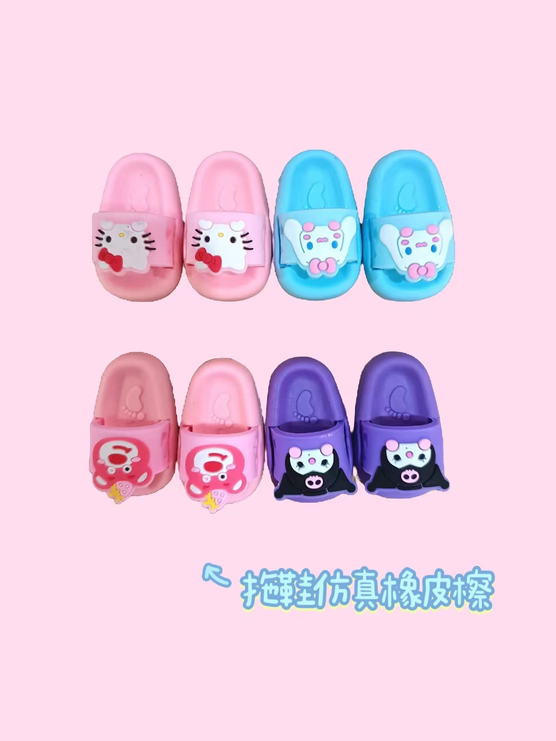可爱创意仿真拖鞋三丽鸥卡通橡皮擦,款式多样,色彩鲜艳,适用多人群,安全材质