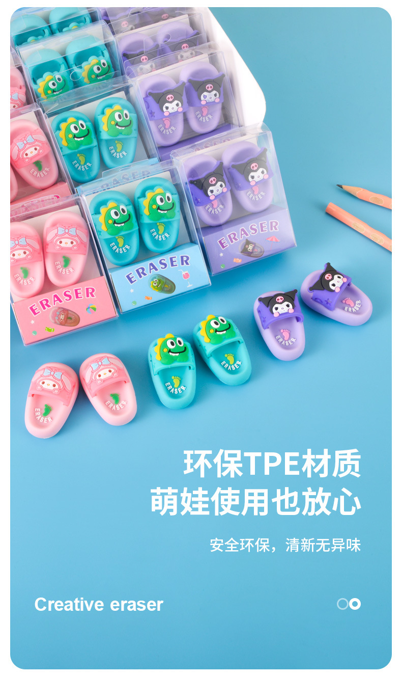 创意可爱拖鞋造型迷你橡皮擦学生学习文具擦的干净无屑橡皮批发