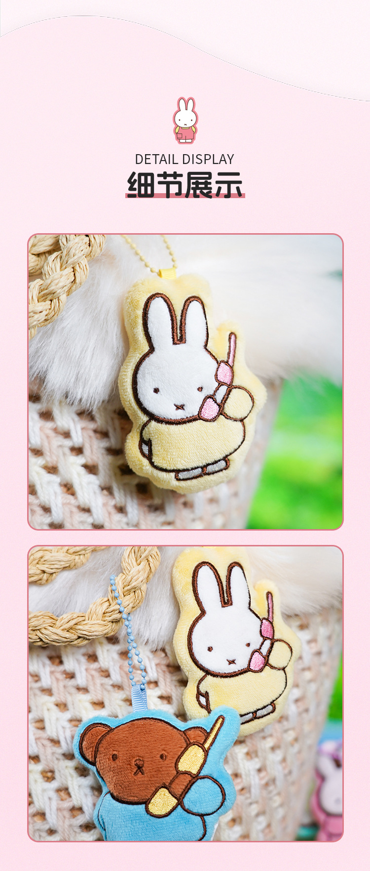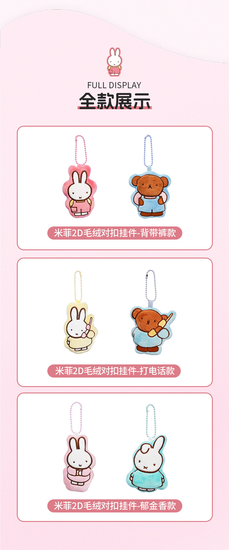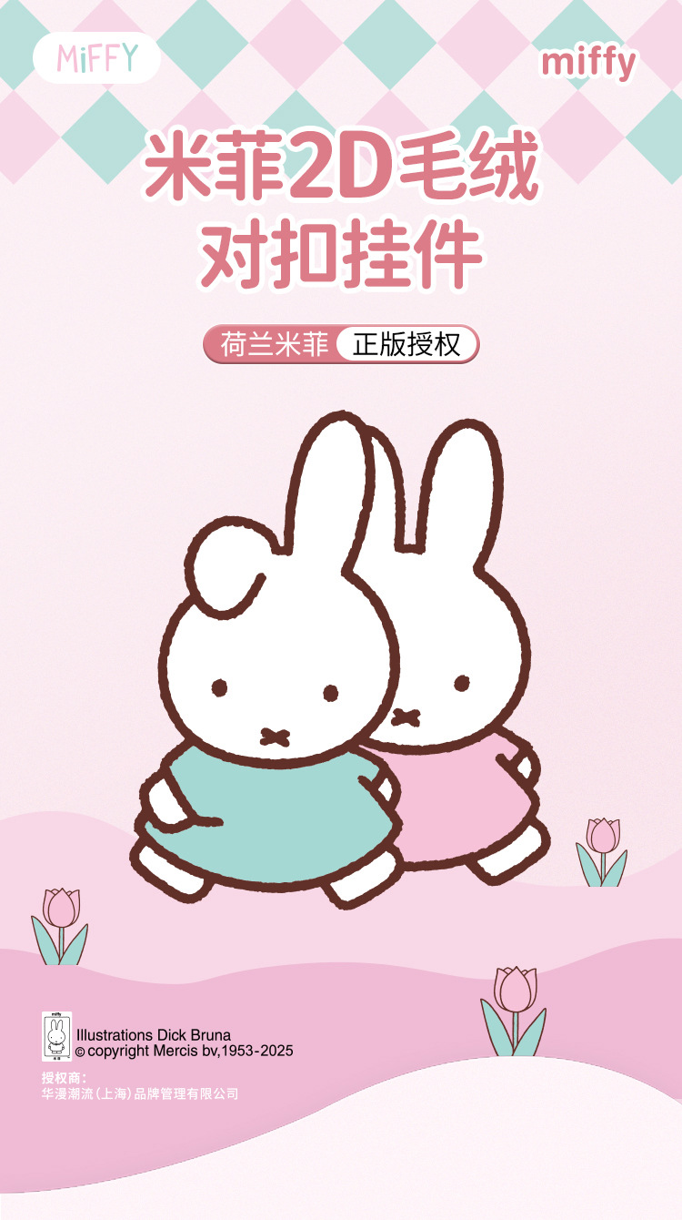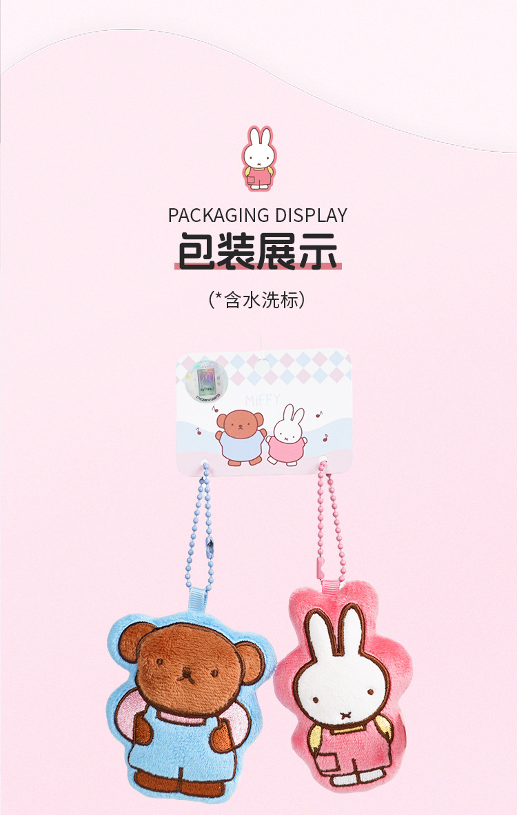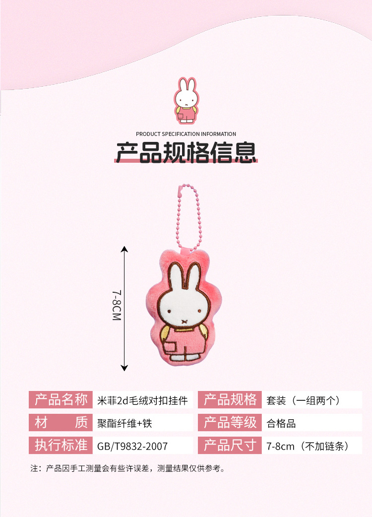 正版卡通米菲2d毛绒对扣挂件钥匙扣可爱包包挂饰汽车钥匙链小礼品