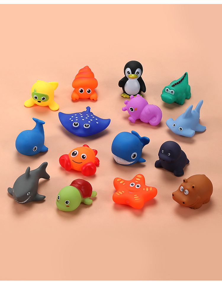 批发儿童海洋仿真发声小动物宝宝洗澡戏水搪胶捏捏叫卡通软胶玩具