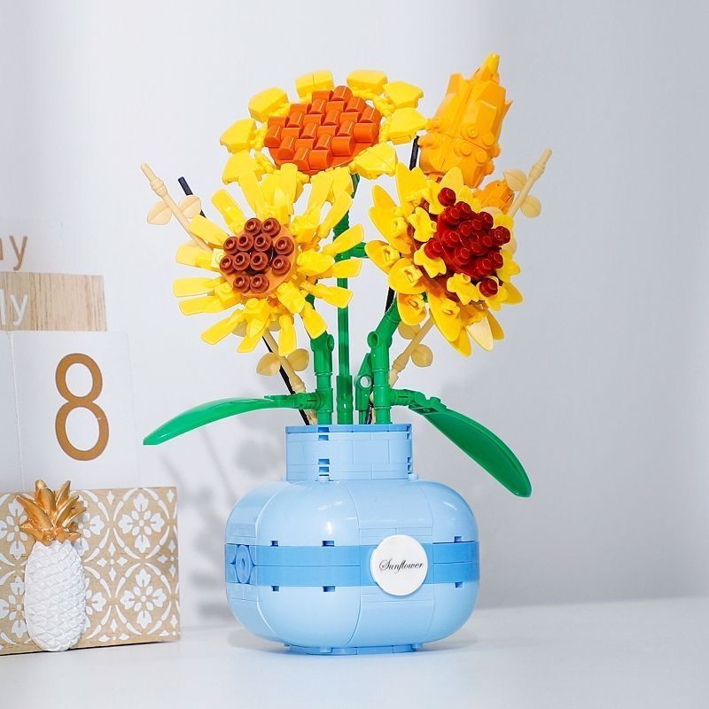 Beledi blok bangunan bunga dirakit buket bunga matahari kompatibel Lego mainan mawar bunga abadi dirakit ornamen Pendidikan