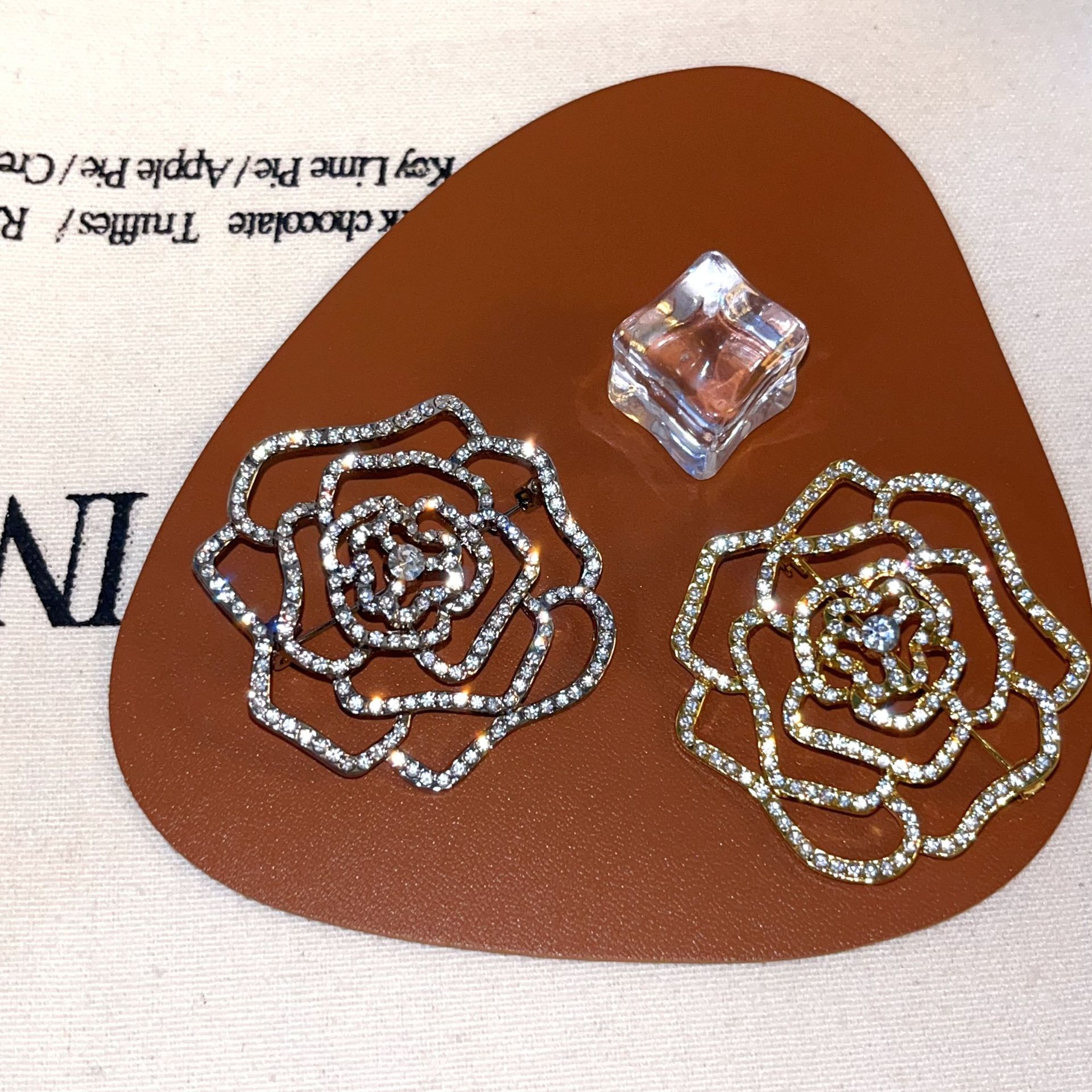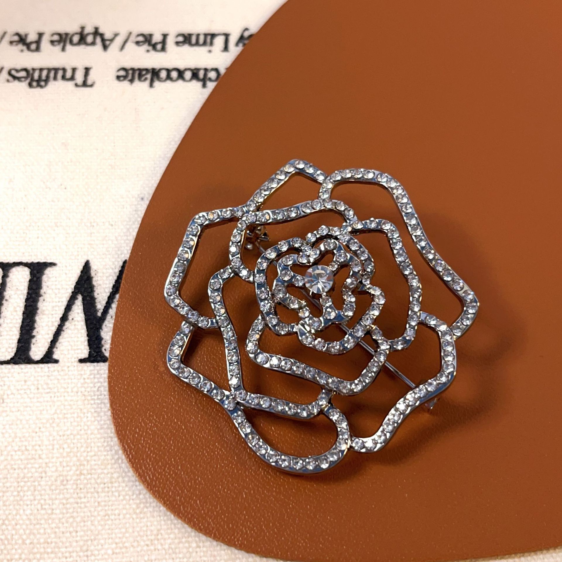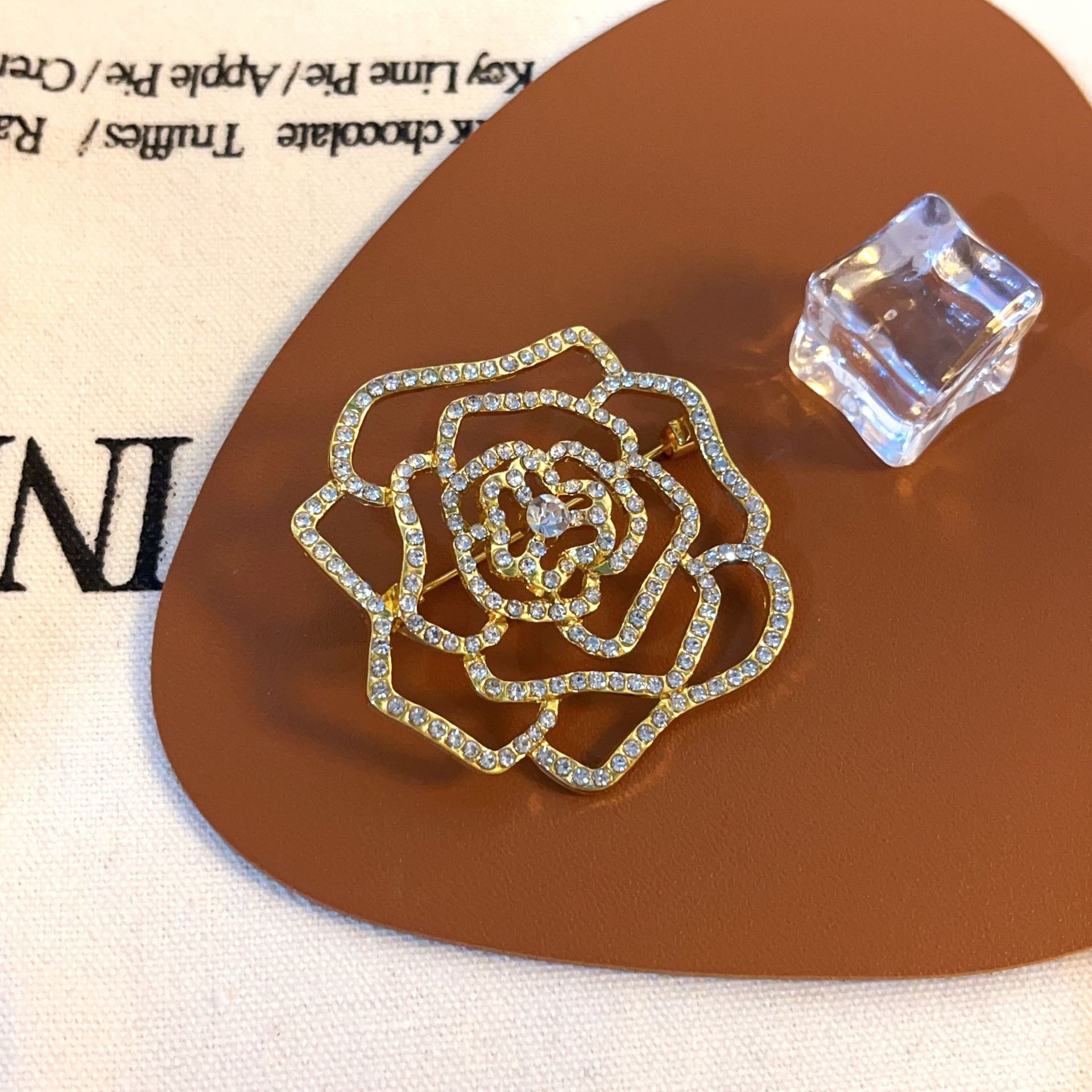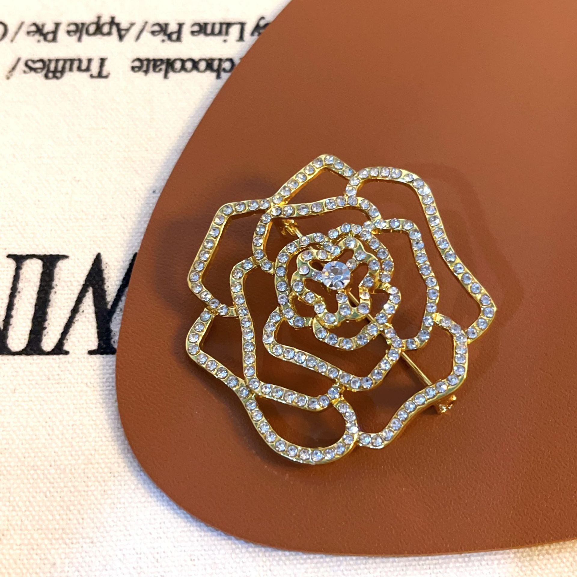 Bros Federasi camellia wanita fashion klasik berlian tertanam korsase kerah saku pin lencana logo Federasi Wanita