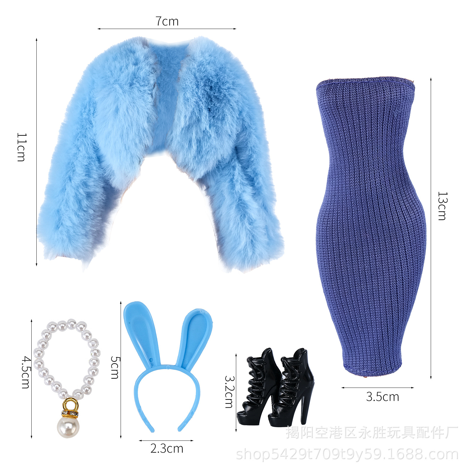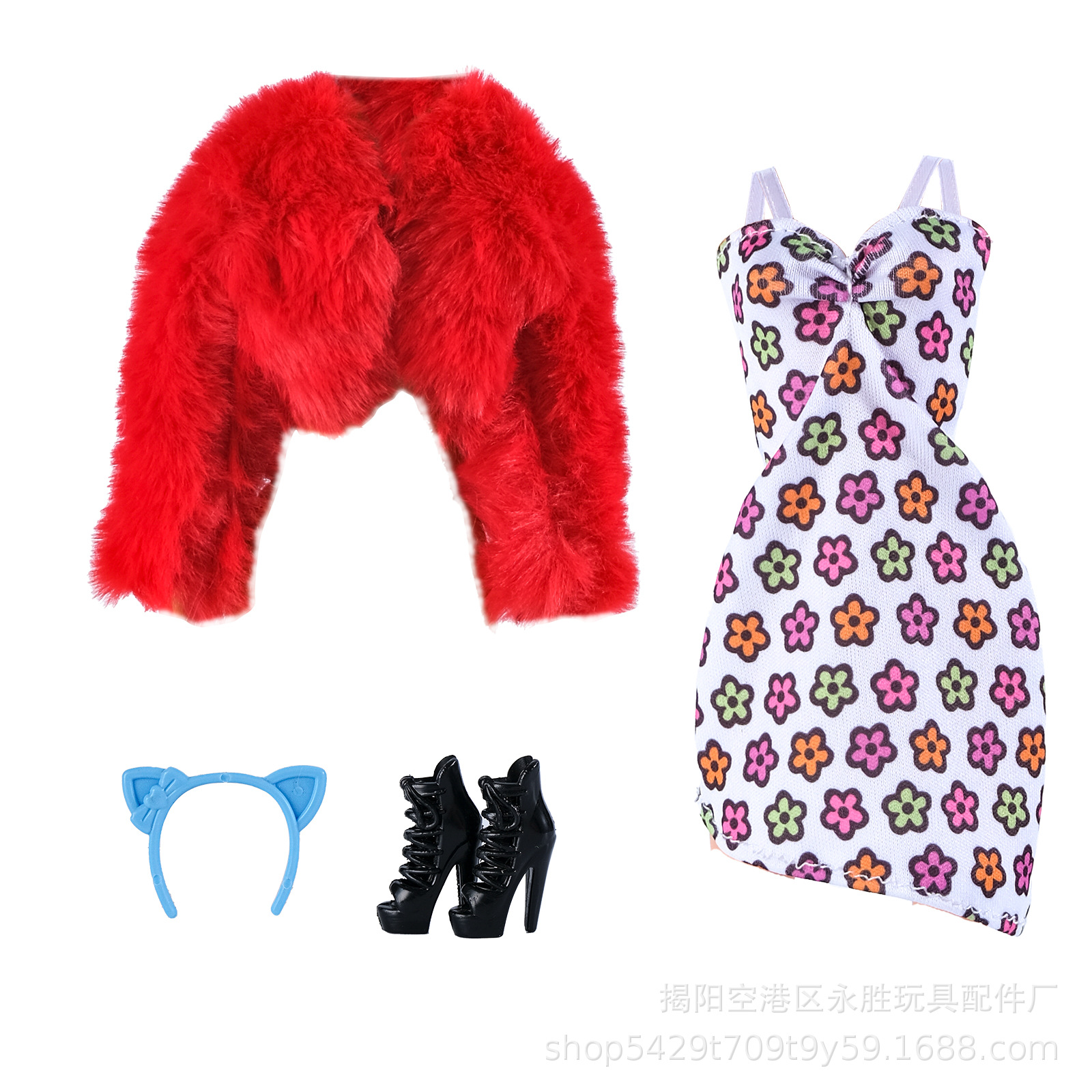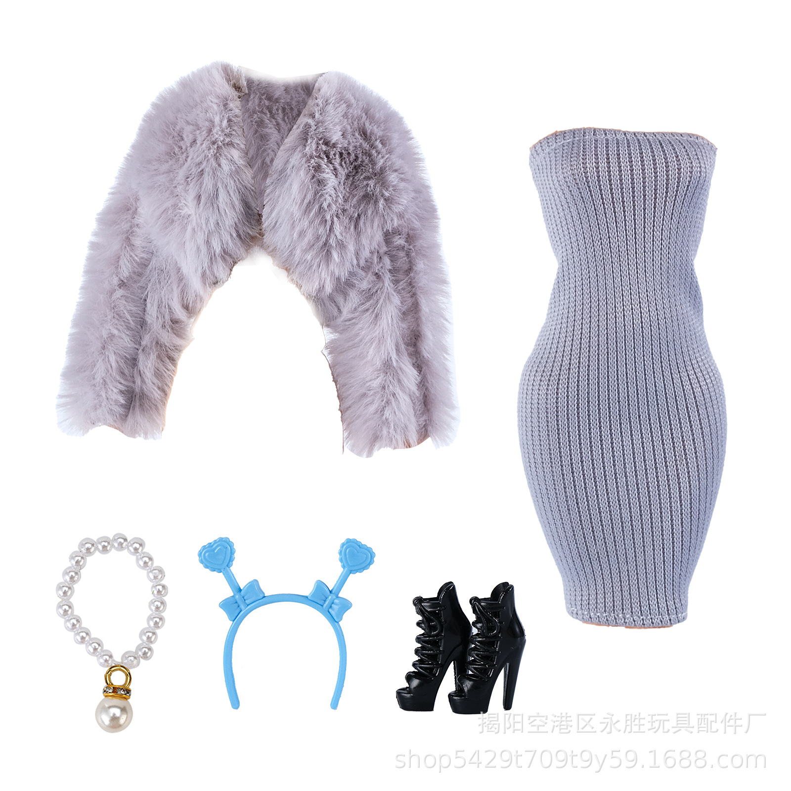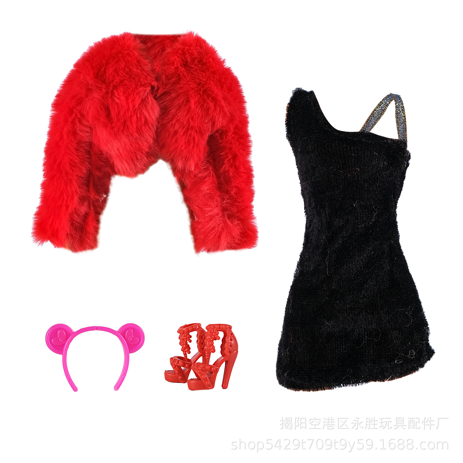 【商品名称】:皮草大衣毛绒时尚套装娃衣女孩裙子换装服