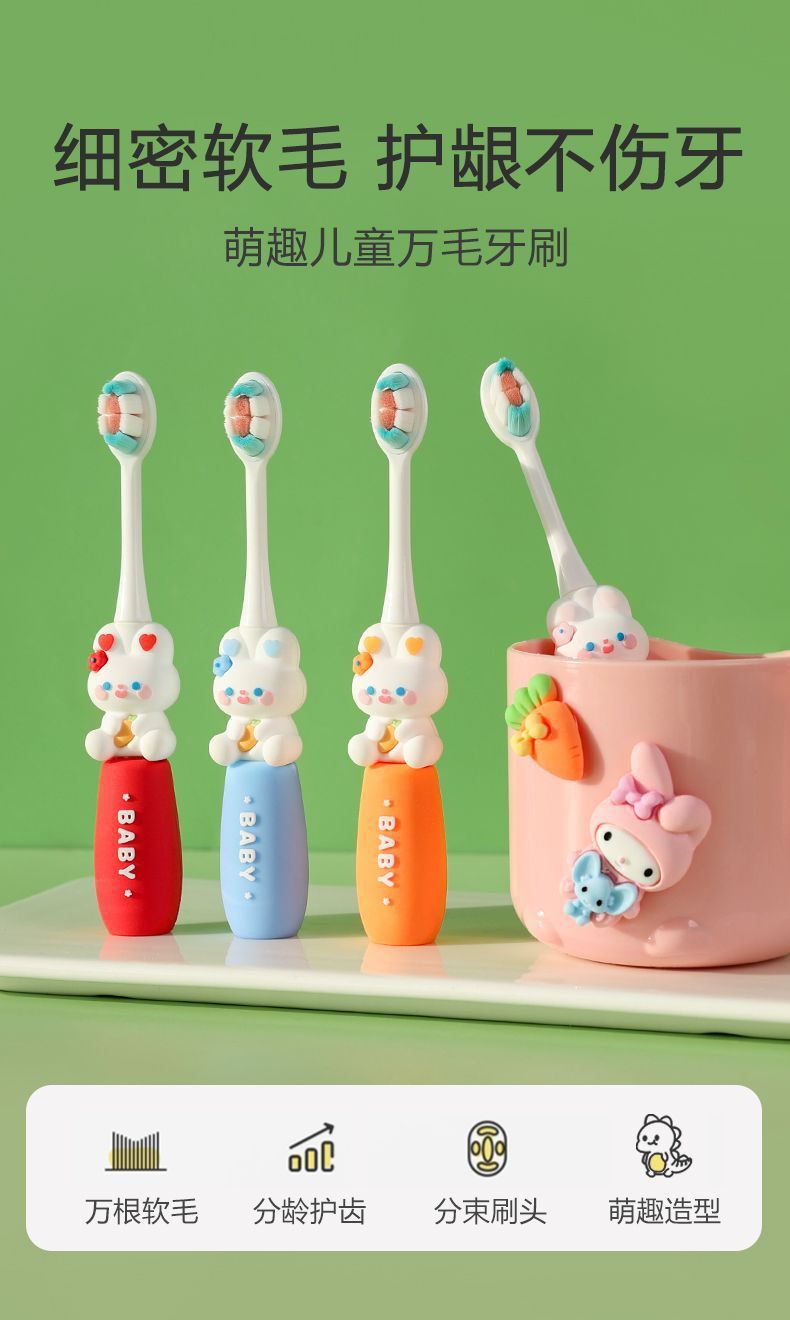 Sikat gigi anak-anak anak 3-12 tahun bayi lucu kelinci sepuluh ribu rambut halus lembut portabel kemasan independen pabrik grosir