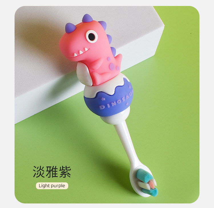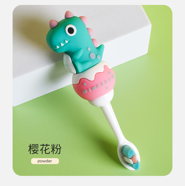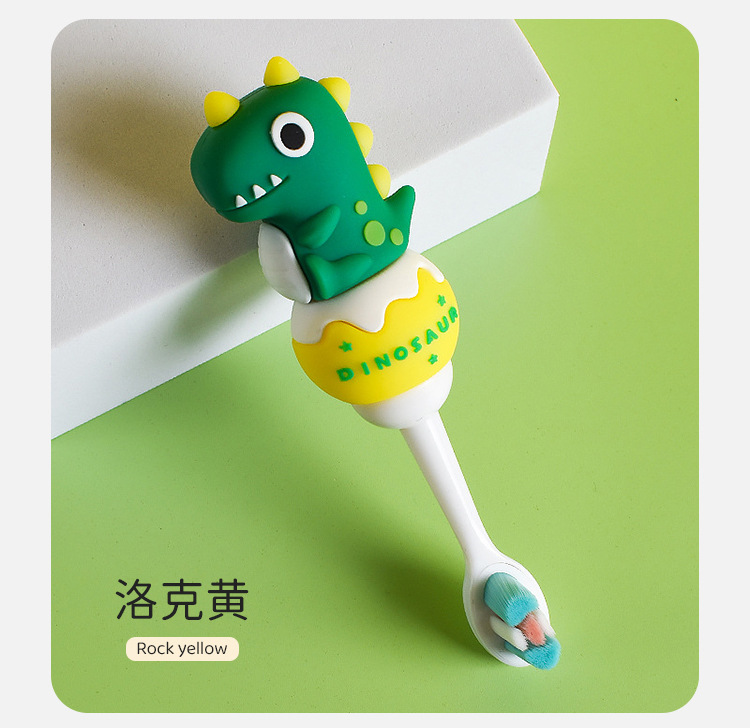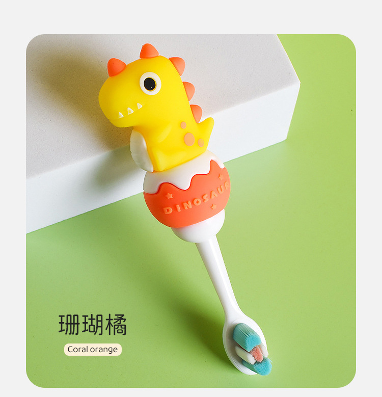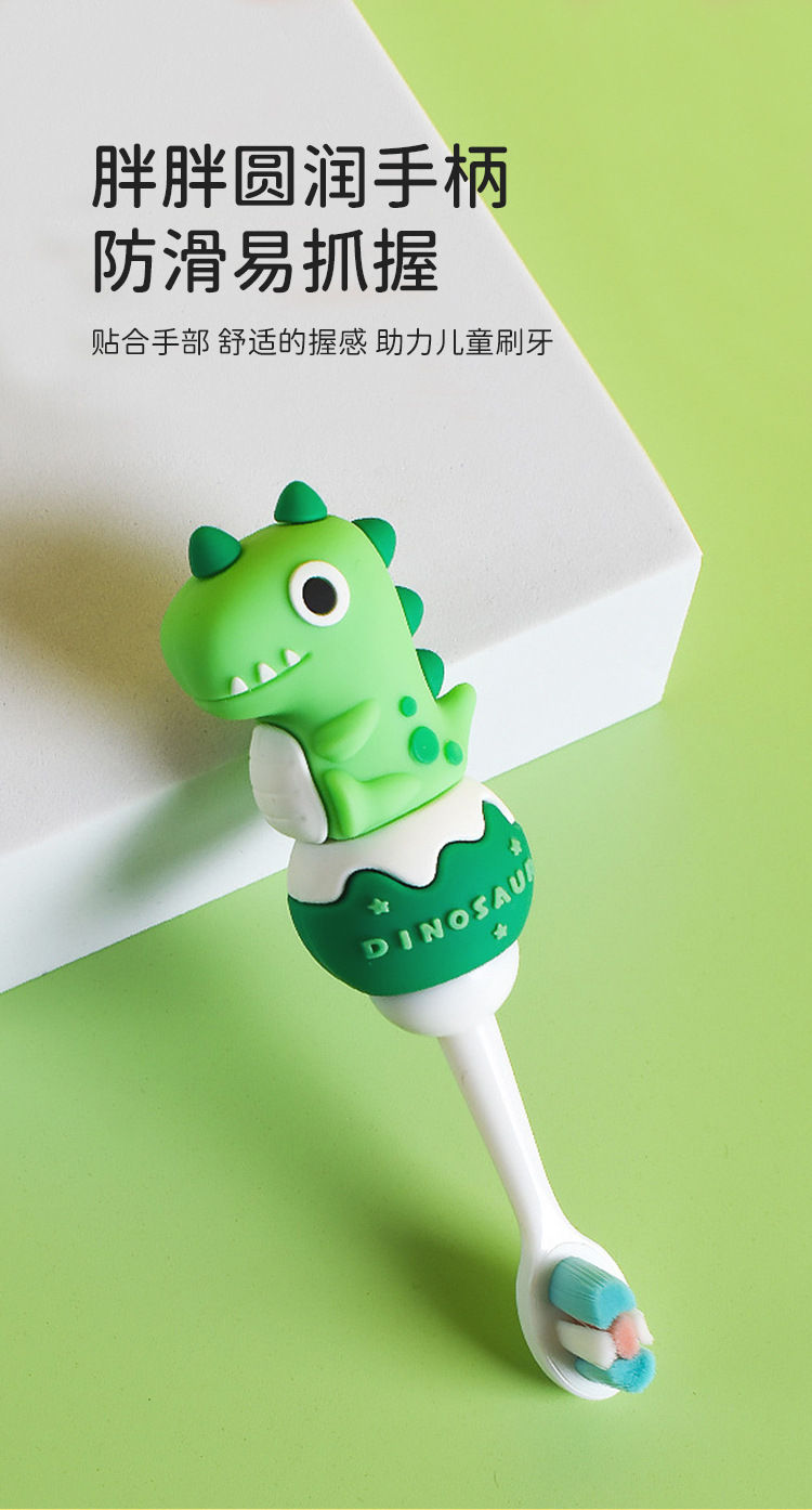 Sikat gigi sepuluh ribu bulu lembut anak-anak, sikat gigi dinosaurus lucu pegangan pendek kepala kecil persediaan untuk anak-anak