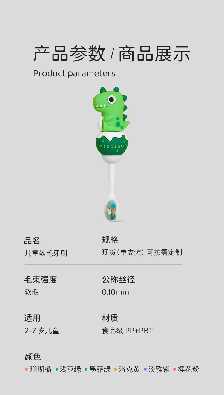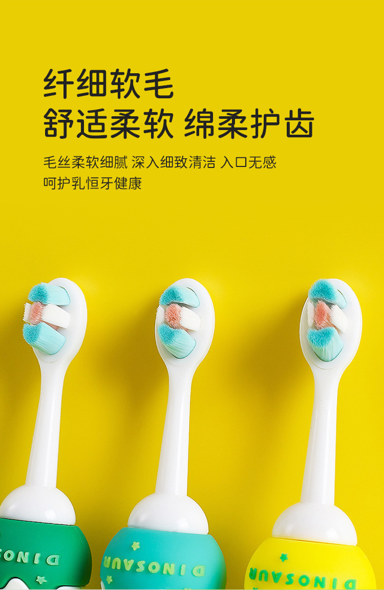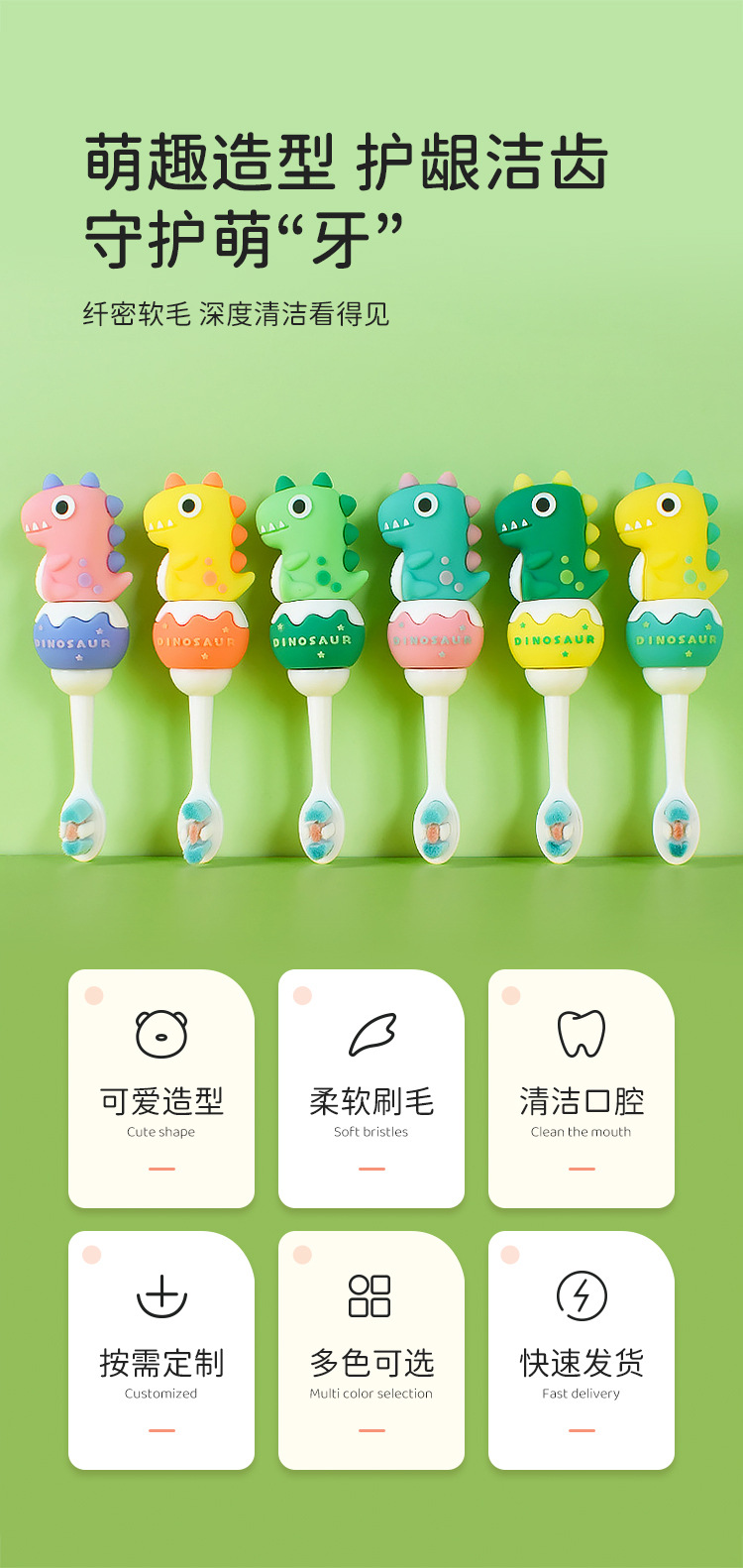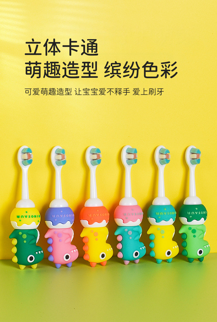 Sikat gigi sepuluh ribu bulu lembut anak-anak, sikat gigi dinosaurus lucu pegangan pendek kepala kecil persediaan untuk anak-anak