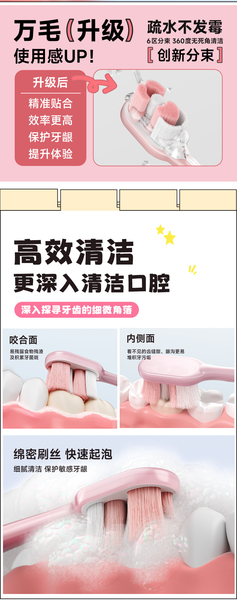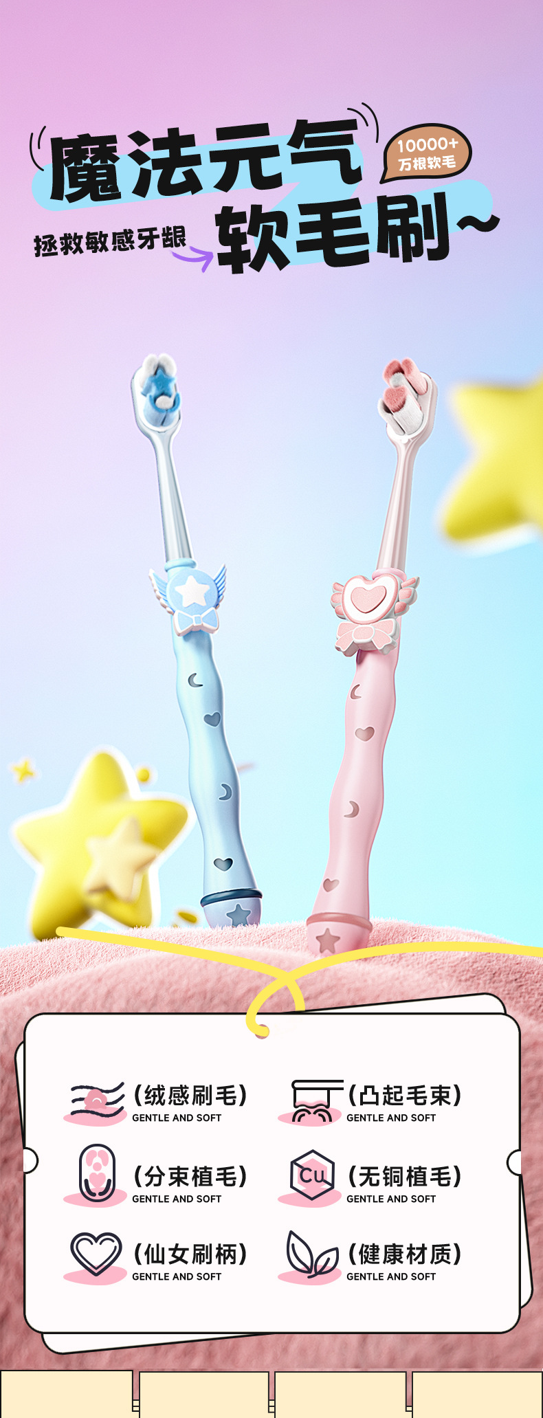 米选魔法棒情侣牙刷两色可爱少女款高级万毛牙刷厂家现货批发