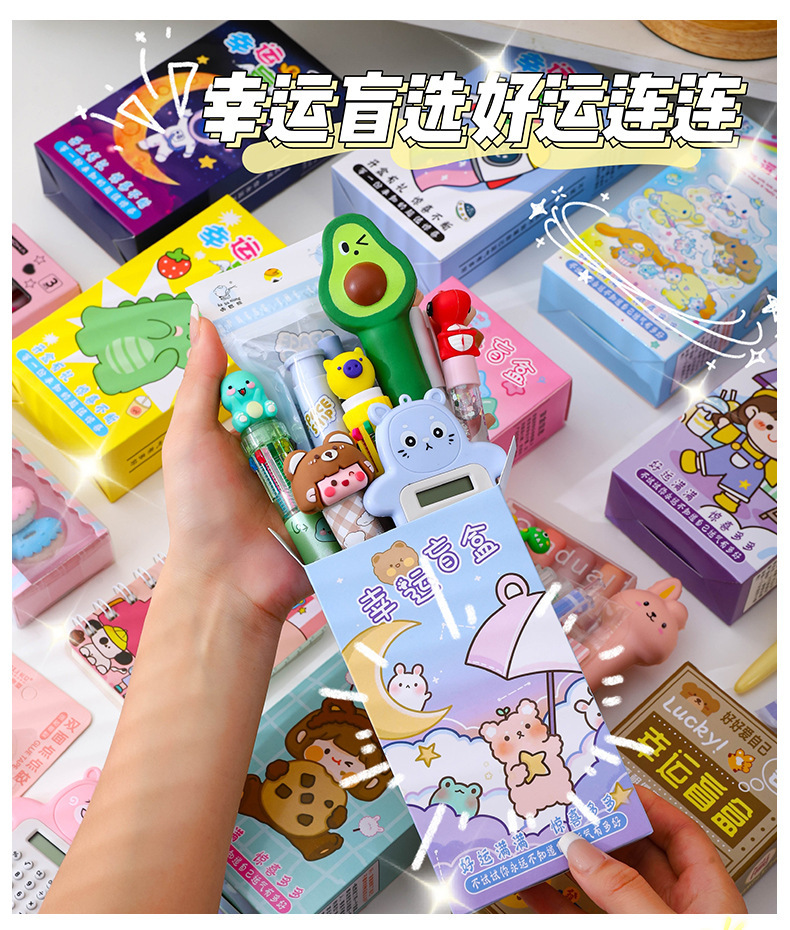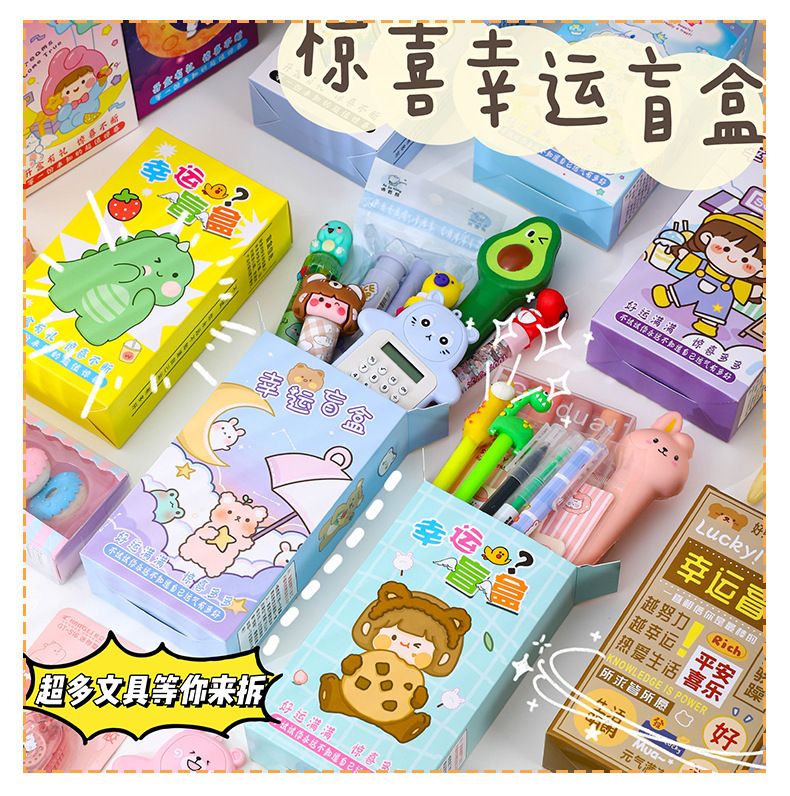 Kotak hadiah alat tulis siswa sekolah dasar dan sekunder, pena dekompresi kartun, kotak hadiah alat tulis, tas hadiah 61