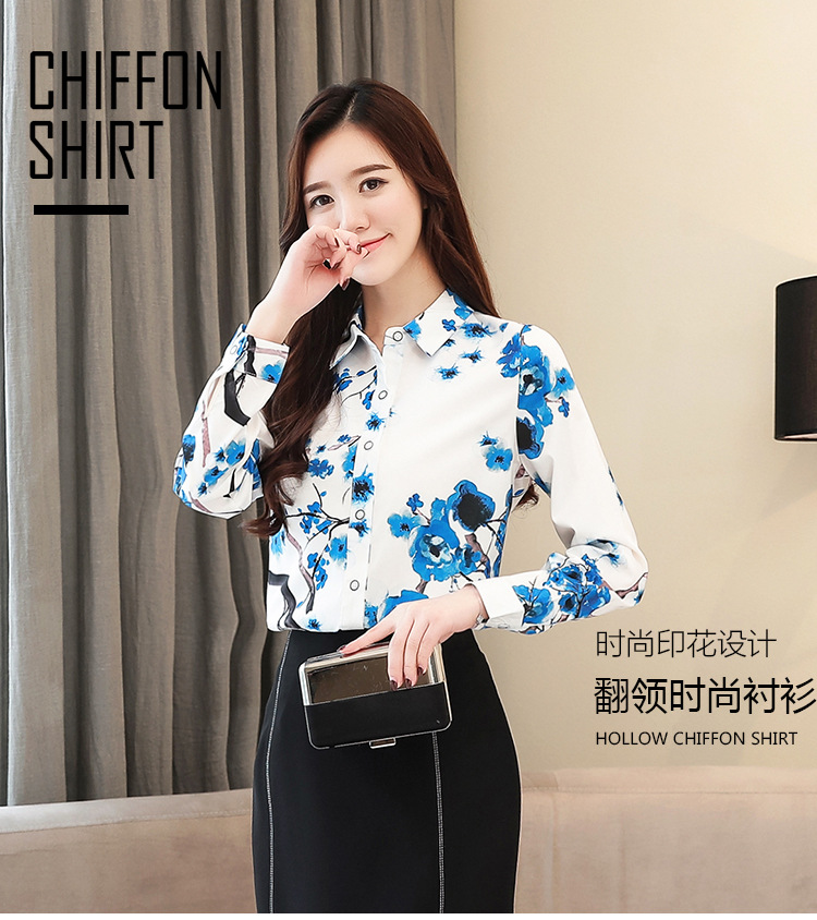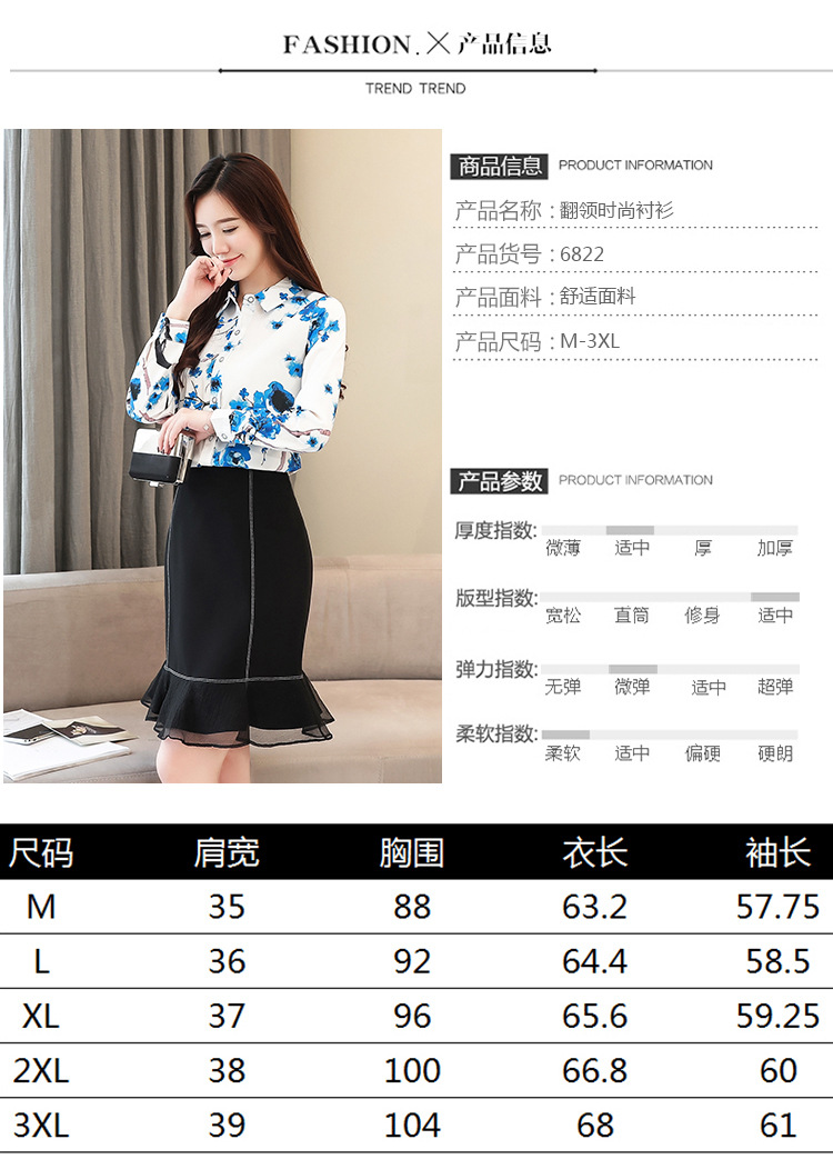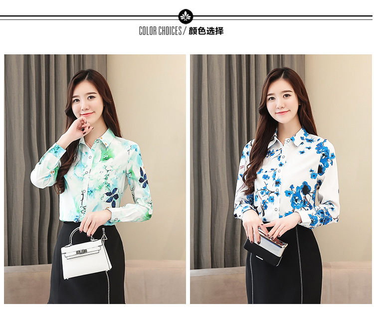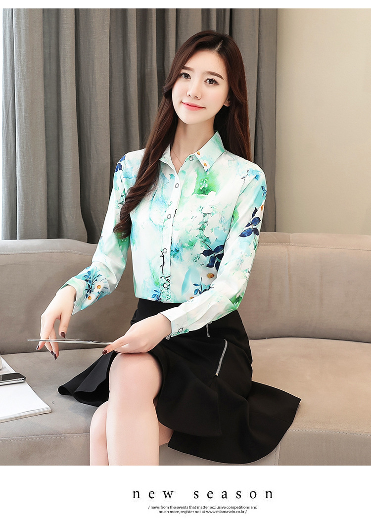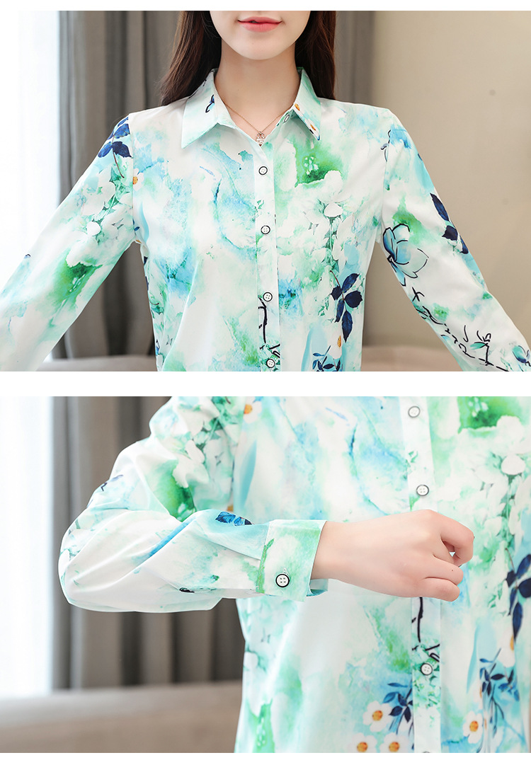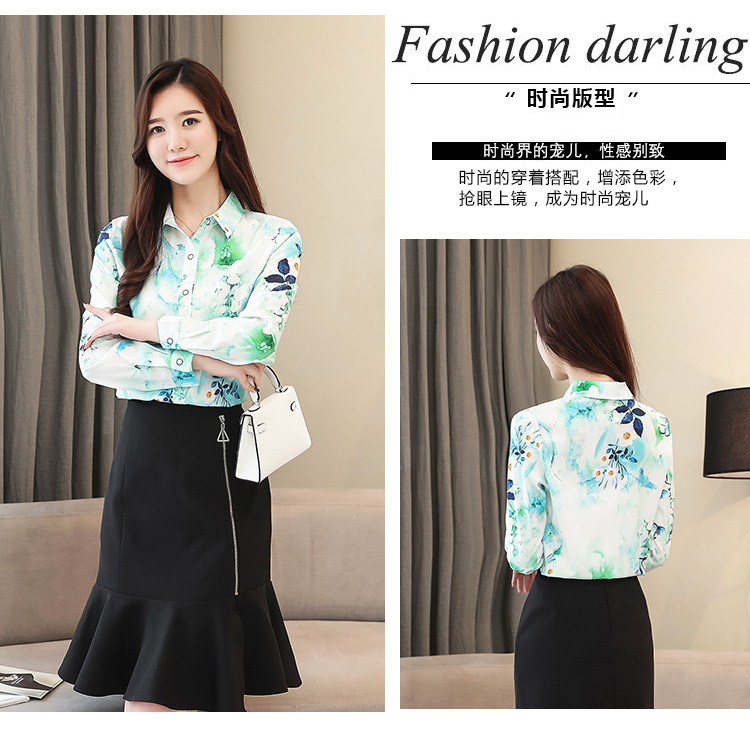 2024 baru musim gugur kemeja motif bunga wanita lengan panjang Korea kasual ibu pakaian wanita ukuran besar kemeja atasan sifon kemeja