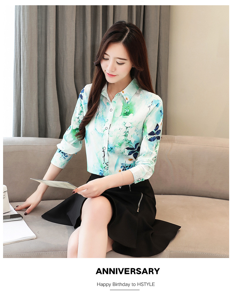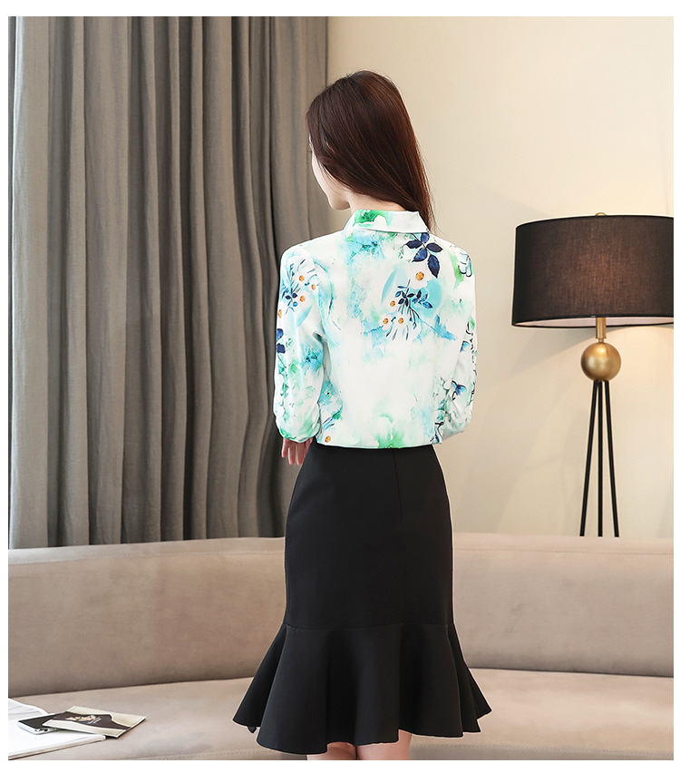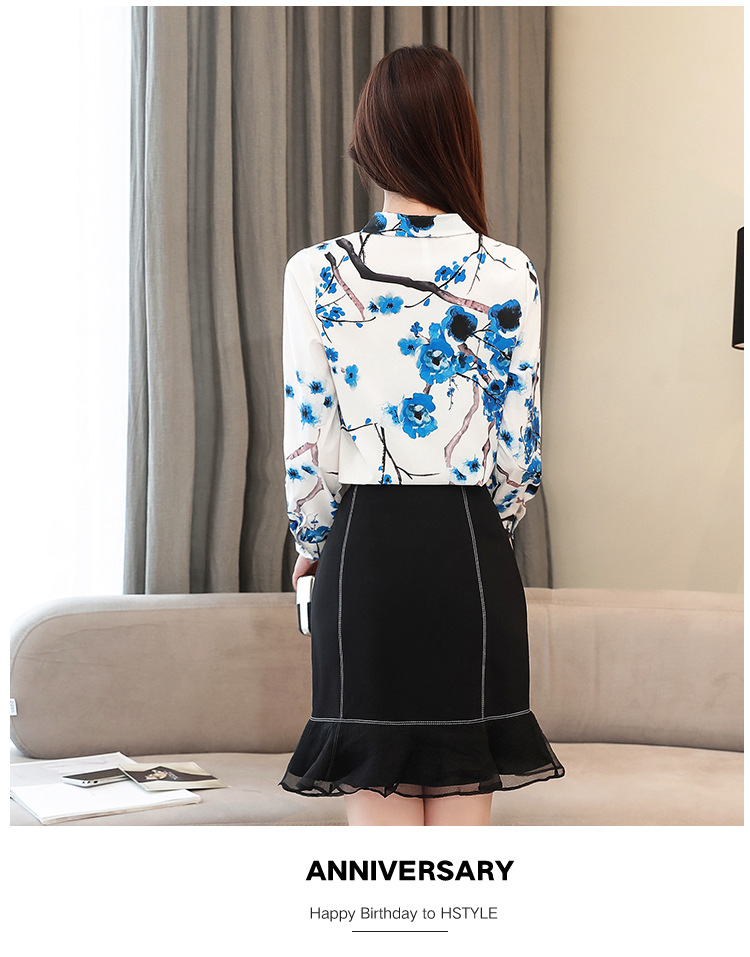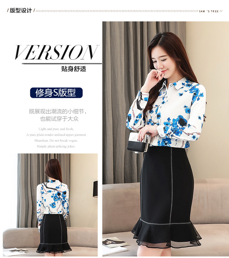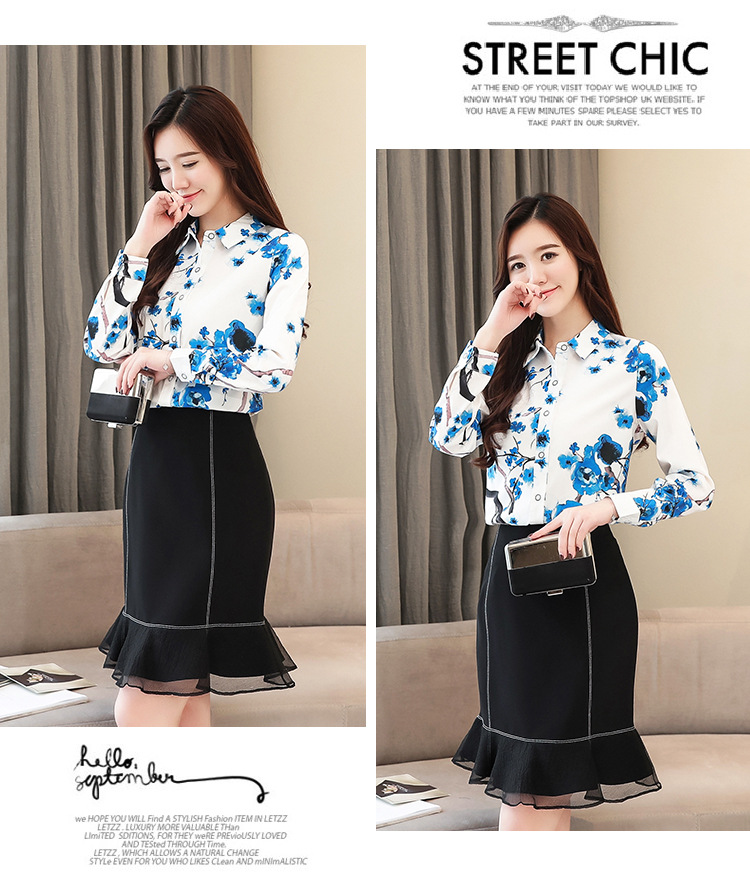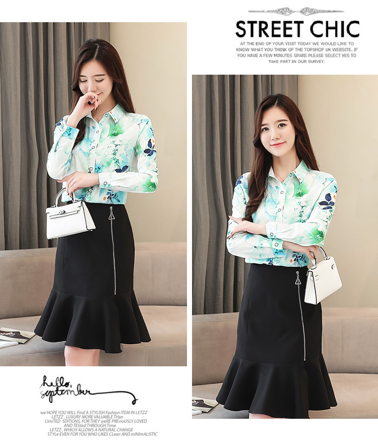 2024 baru musim gugur kemeja motif bunga wanita lengan panjang Korea kasual ibu pakaian wanita ukuran besar kemeja atasan sifon kemeja
