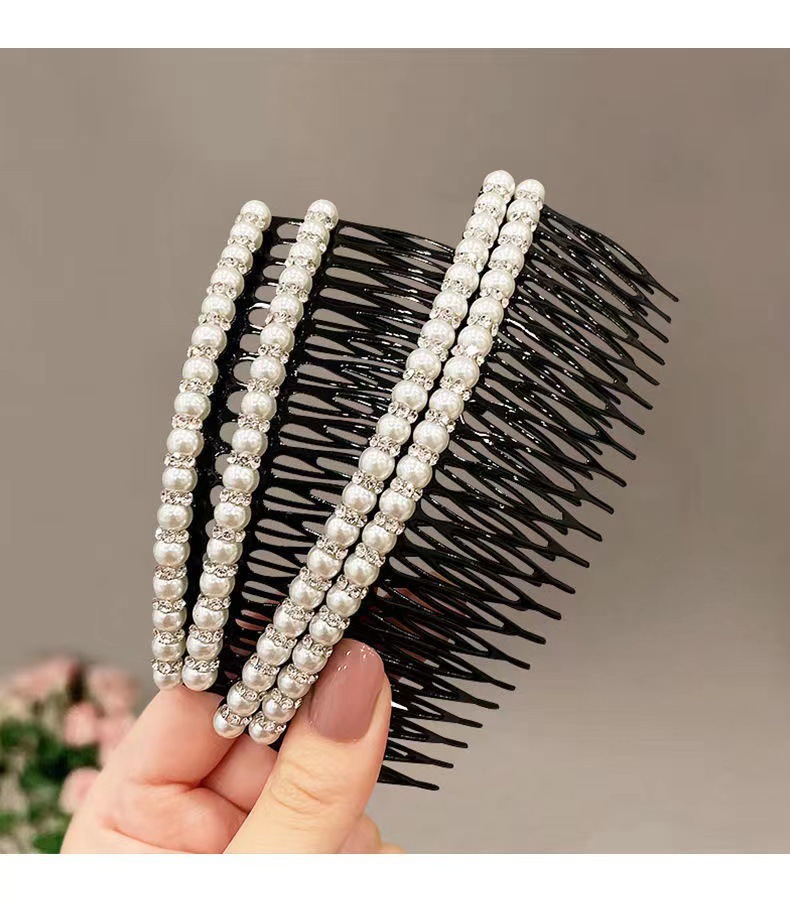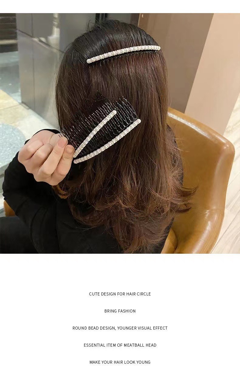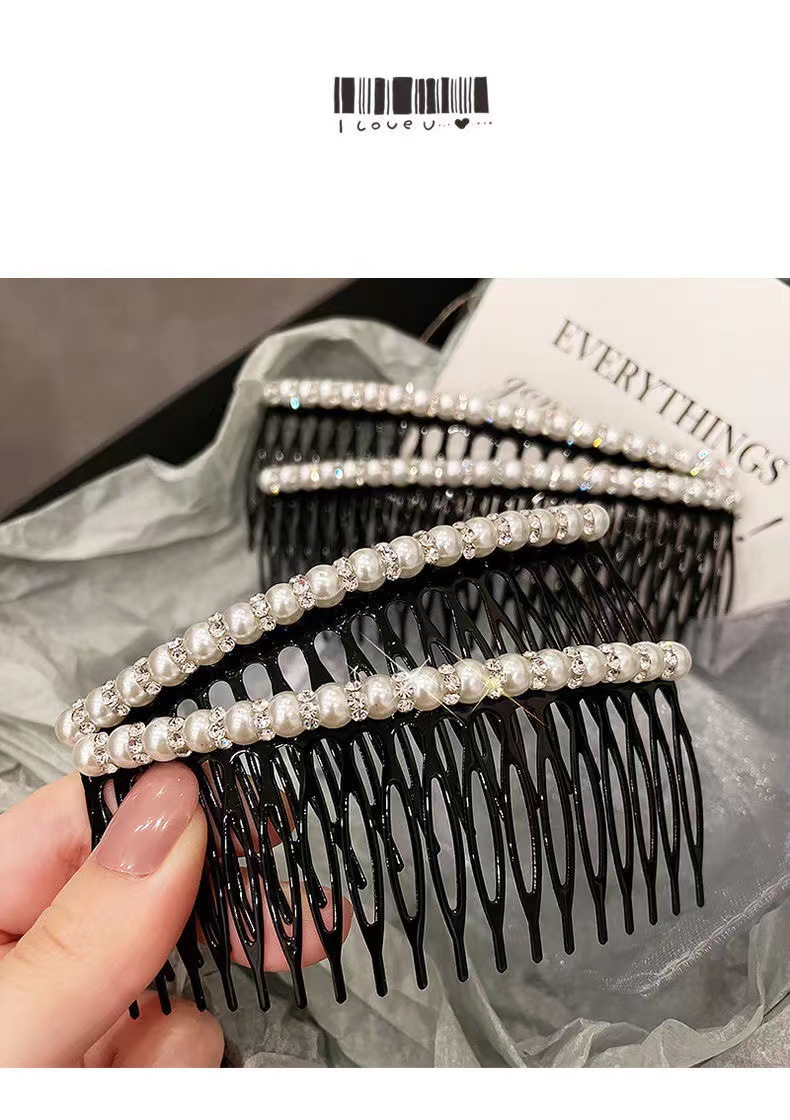 韩版珍珠带钻刘海插梳盘发碎发整理发梳气质百搭防滑带齿发卡手工