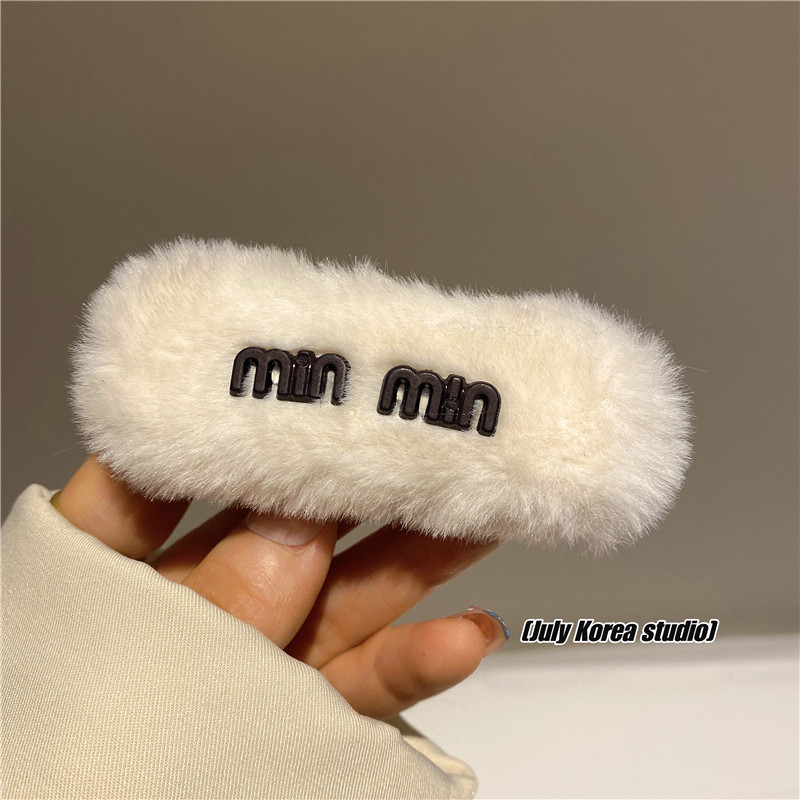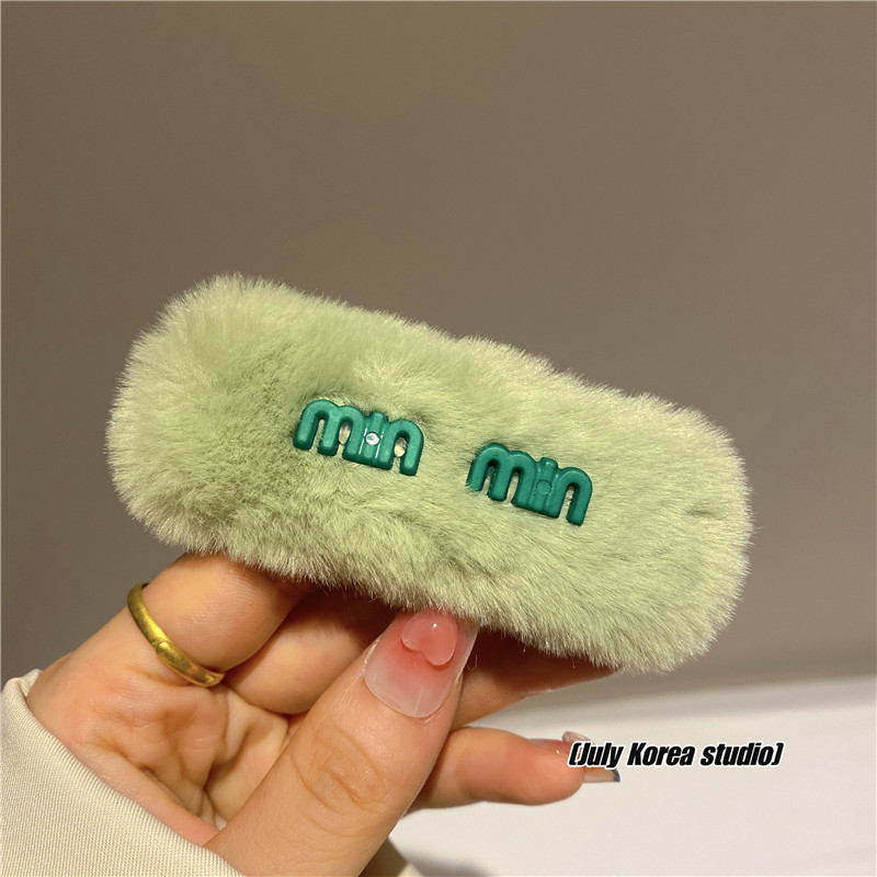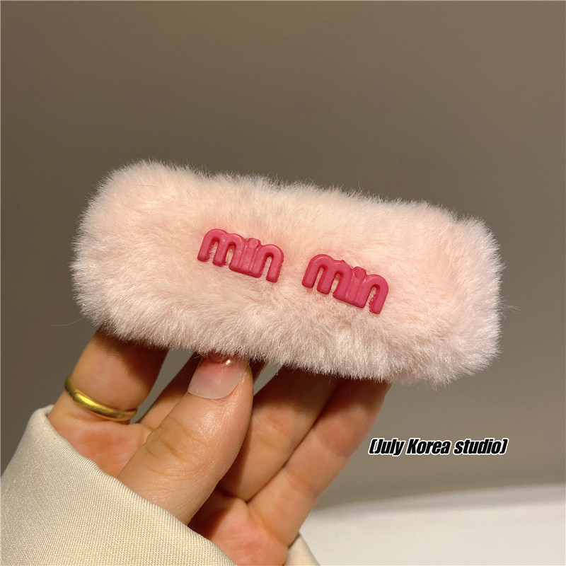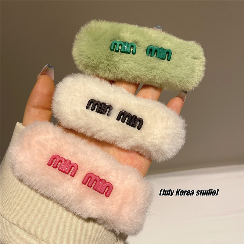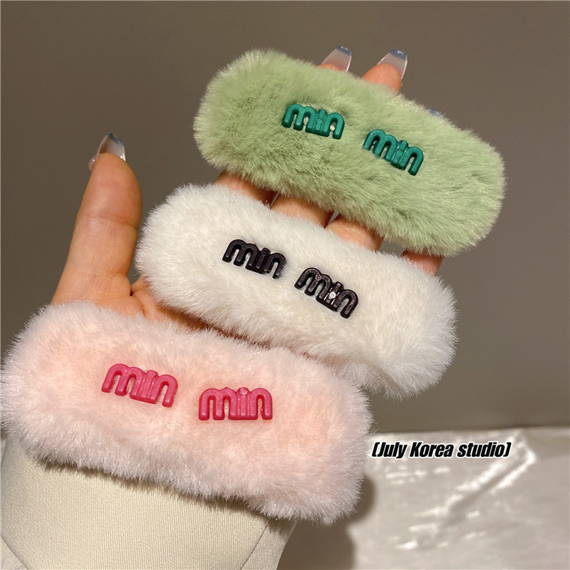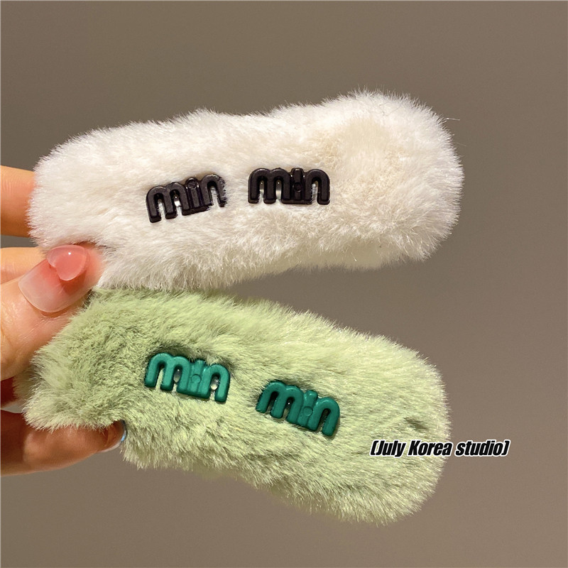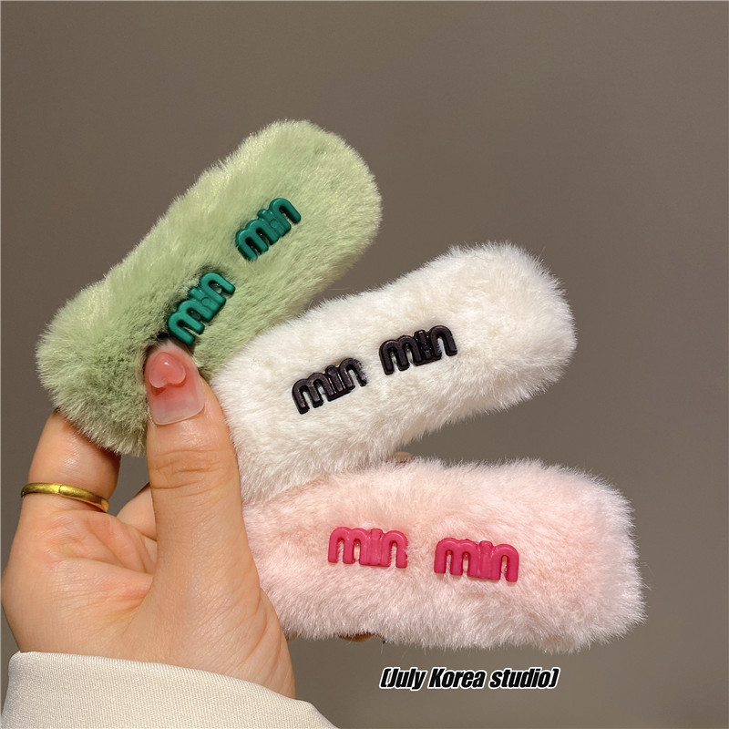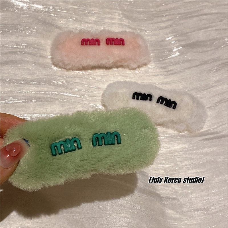 秋冬字母亮彩色毛毛发夹女2022年新款后脑勺毛绒bb夹可爱侧边头饰