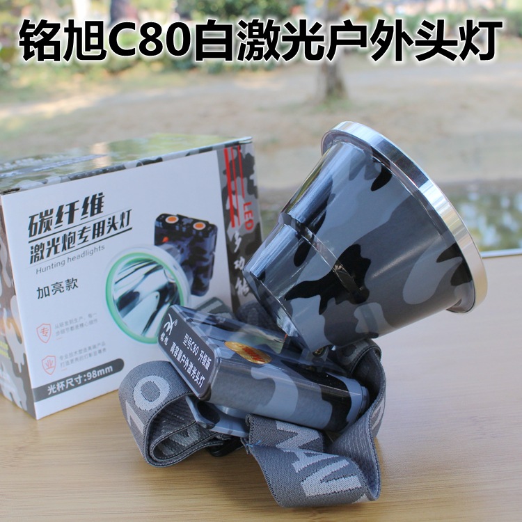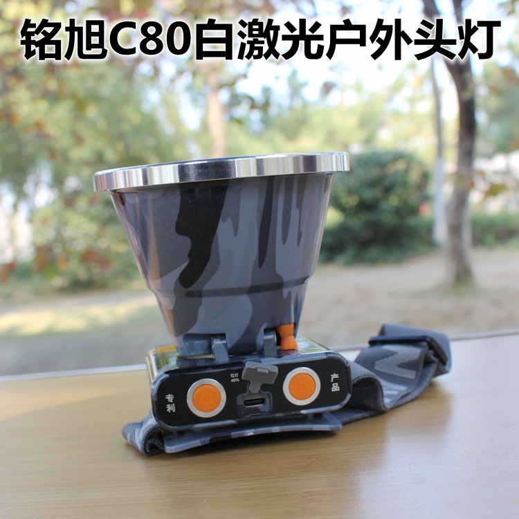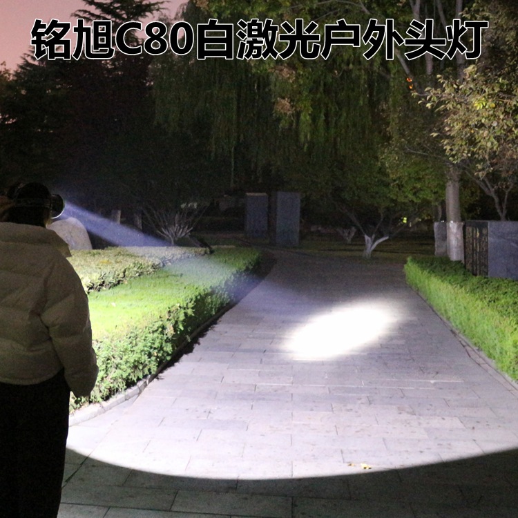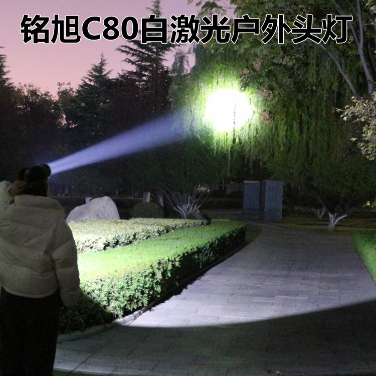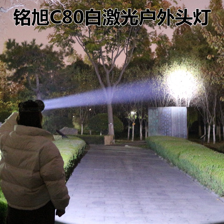 Đèn đầu laser ngoài trời công suất lớn C80 của Mingxu có viên đèn laser trắng nhập khẩu, tầm chiếu hiệu quả lên đến 1000 mét. Nguồn sáng là ánh sáng trắng chuẩn. Đường kính đèn đầu là 10,5 CM. Được tích hợp ba viên pin lithium 18650 dung lượng cao bên trong và có индиicator năng lượng pin. Đèn có thể chiếu sáng liên tục ở chế độ sáng mạnh trong 8 giờ. Có ba chế độ sáng: sáng mạnh, sáng yếu và chớp chói. Với dung lượng pin cao và thời gian sử dụng pin rất dài, nhẹ và bền, phù hợp cho những hoạt động như phiêu lưu ngoài trời, tuần tra, ứng phòng khẩn cấp, cứu hộ và các nhu cầu chiếu sáng ban đêm khác.