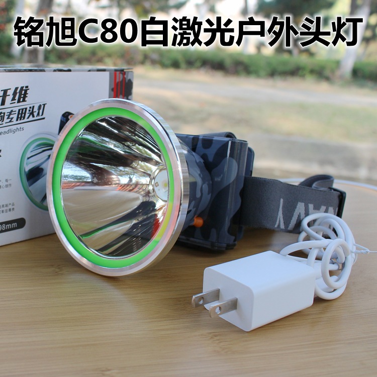 Mingxu C80 High-power Outdoor Laser Headlamp. It is equipped with imported white laser lamp beads, with an effective range of 1000 meters. The light source is pure white light. The diameter of the lamp head is 10.5 CM. It has three built-in 18650 high-capacity lithium batteries and comes with a battery indicator. It can continuously illuminate in strong light mode for 8 hours. There are three lighting modes: strong light, weak light, and strobe. With high capacity and long battery life, it is lightweight and durable, making it suitable for outdoor adventures, patrols, emergencies, rescues, and other nighttime lighting needs!