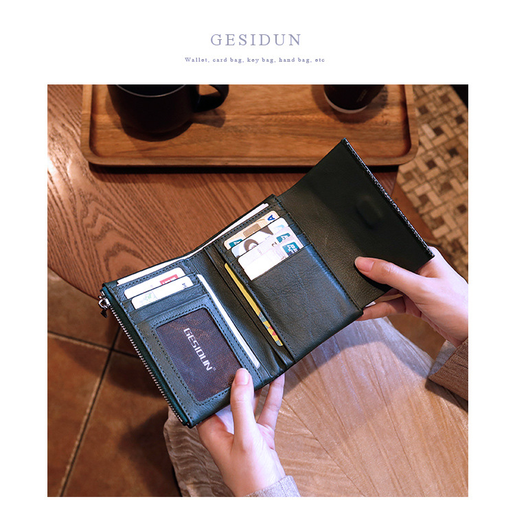 Dompet Kulit Asli Model Pendek Fashion Lintas Batas Dompet Kancing Magnetik Kulit Asli Wanita Tas Tangan Kecil Pabrik Grosir