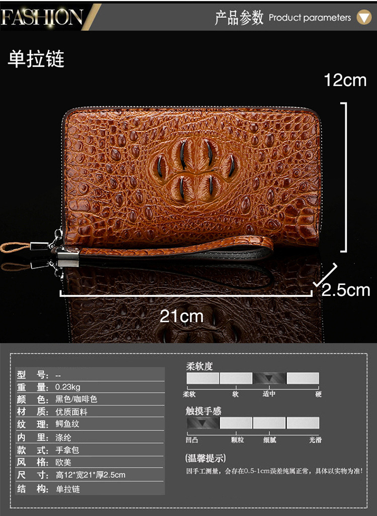 Tas genggam pola buaya pria, dompet tas ponsel, tas kartu, dompet ritsleting tunggal, lintas batas perdagangan luar negeri 2023
