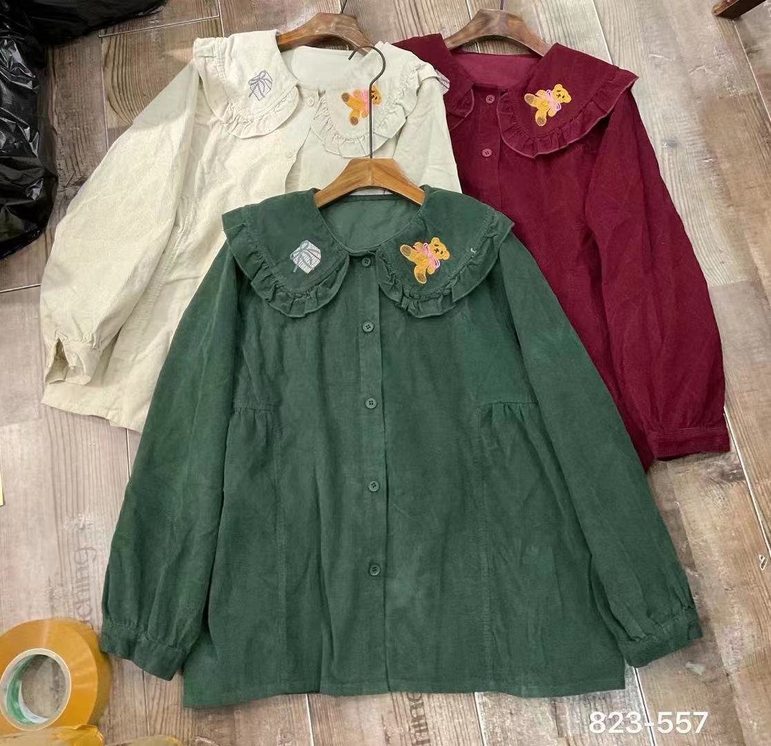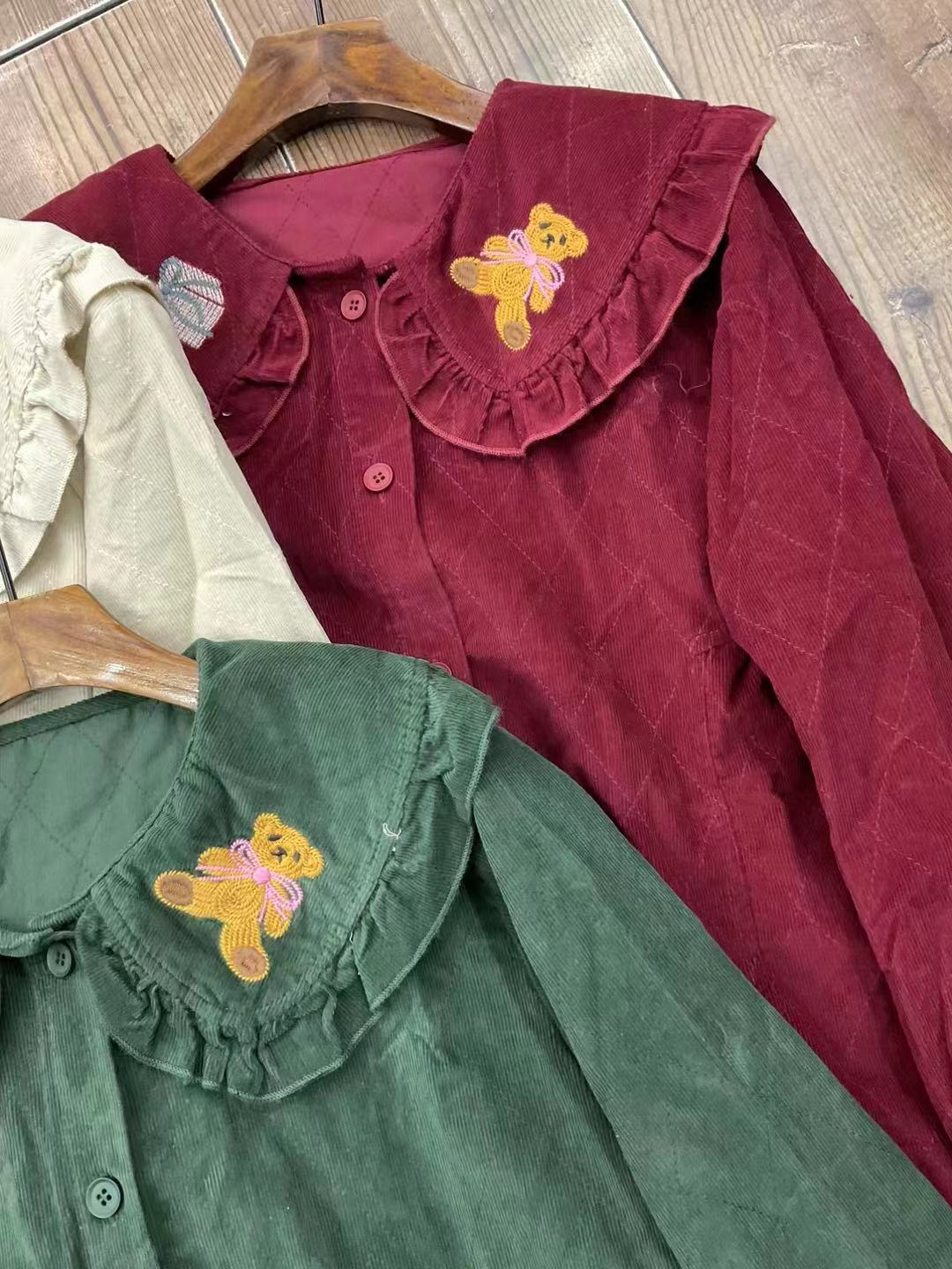 Baju Wanita lengan panjang Jepang, pakaian Atasan Wanita lengan panjang, katun dan linen, telinga besar, manis, musim semi, baru, 2024