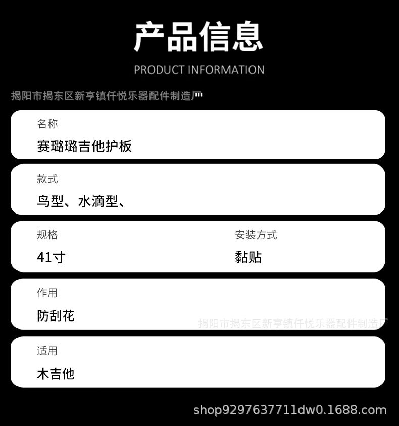 Aksesoris Alat Musik Pelindung Papan Pelindung Cellulo Hitam Putih/Pola Kerang Berwarna/Bintik Kuning dan Hitam/Papan Pelindung Gitar Model Baru
