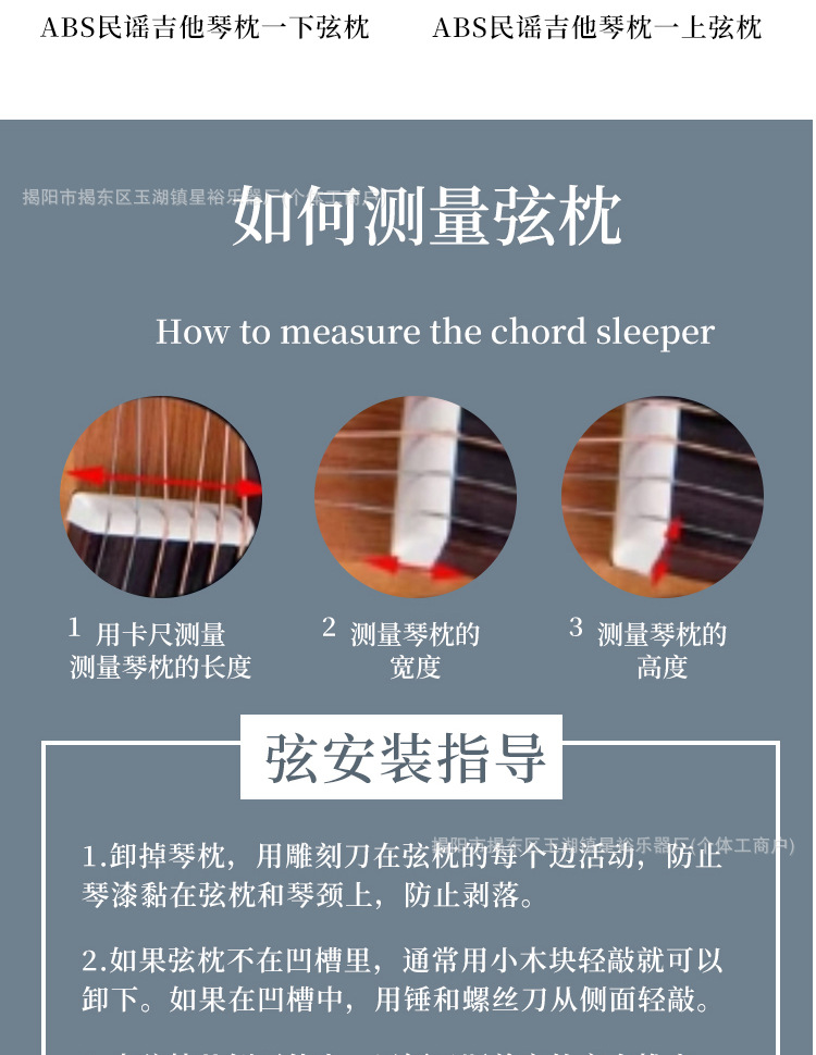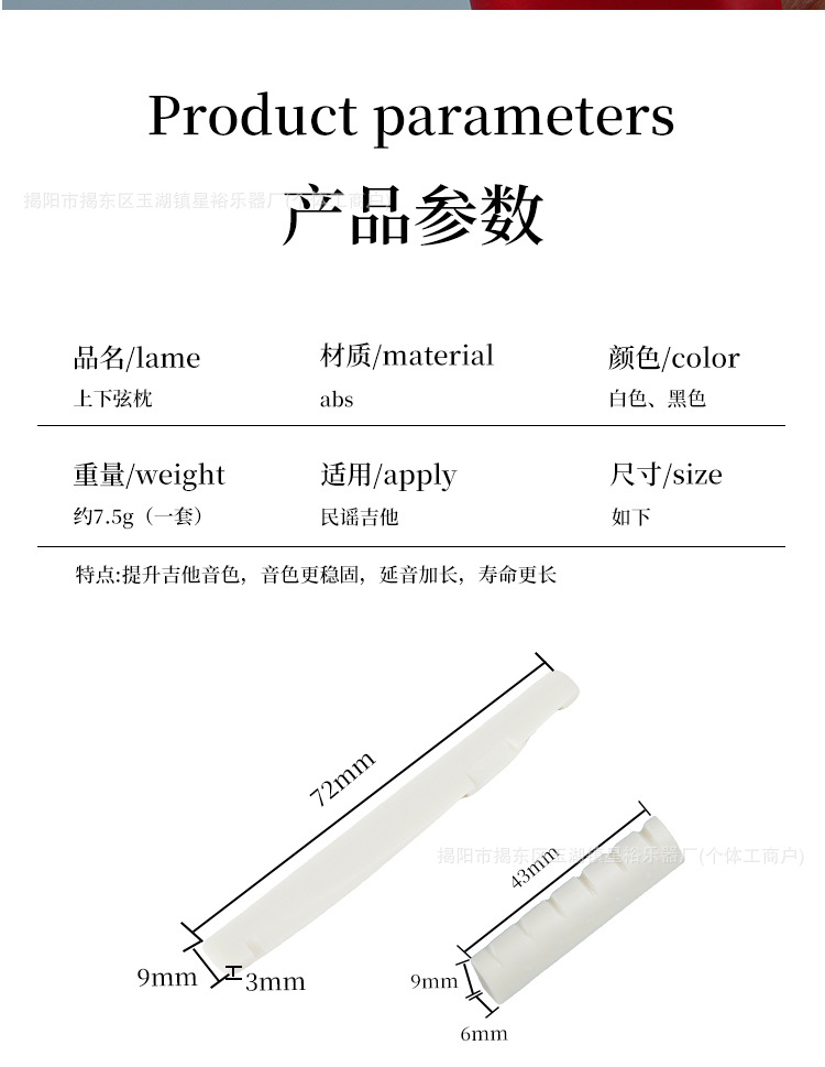 民谣吉他上弦枕下弦枕 黑色白色ABS上下琴枕琴桥通用弦枕吉他配件
