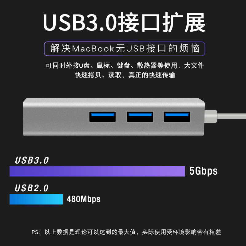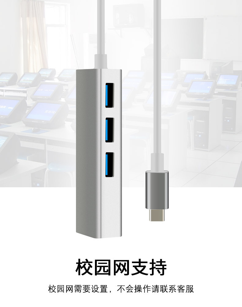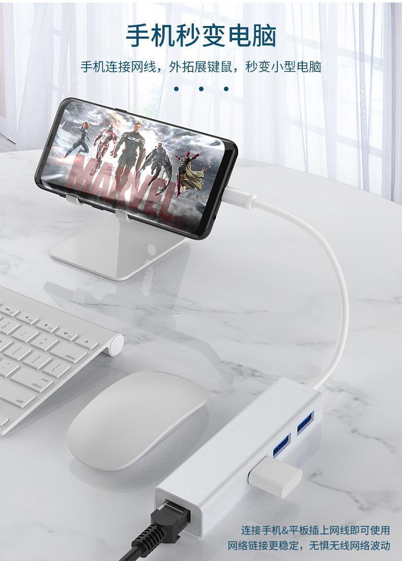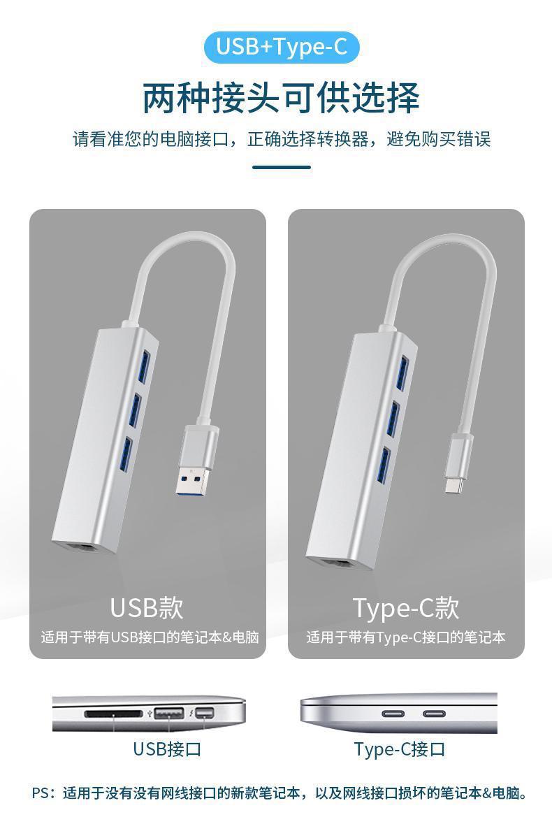 Hub jaringan USB3.0 Gigabit berbahan aluminium alloy ke RJ45 100M, hub komputer, docking station eksternal Type-C