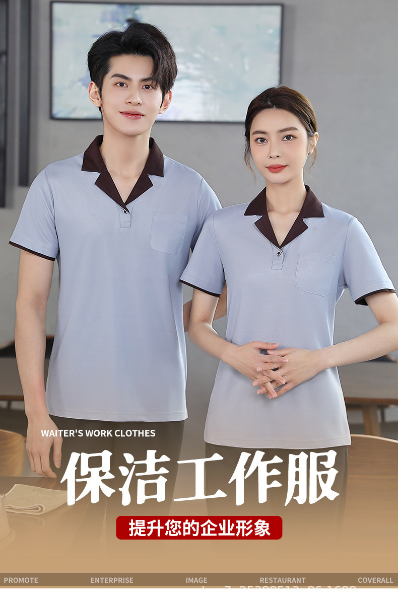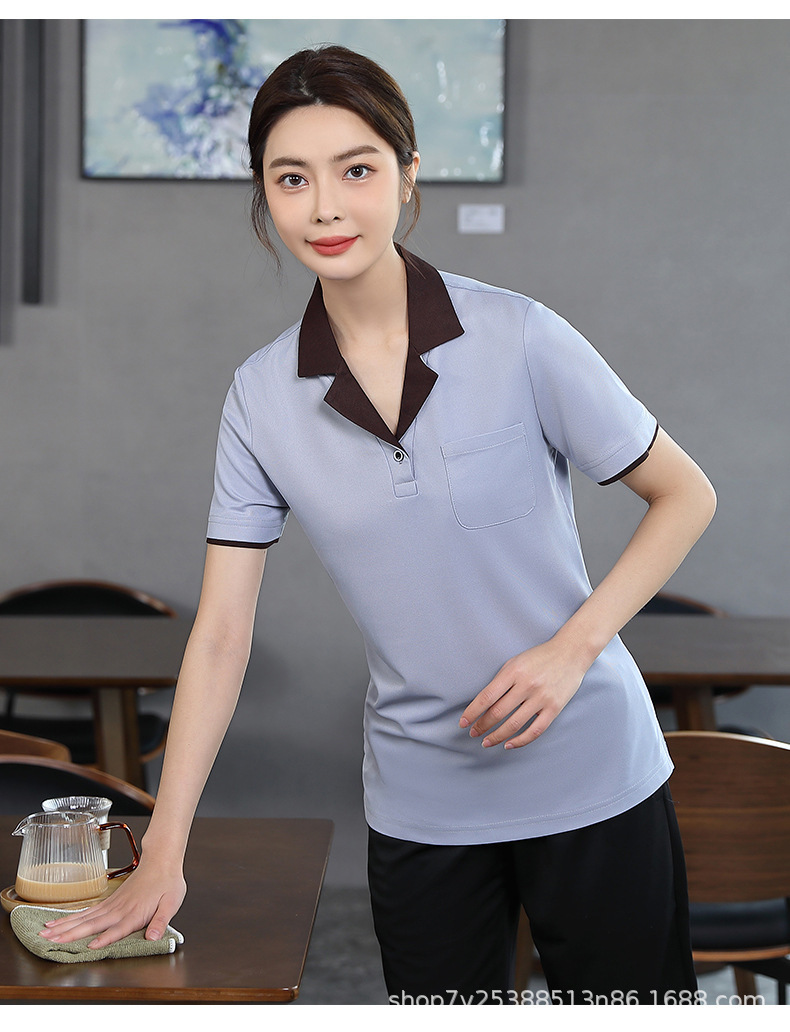 Pakaian kerja pembersih properti perumahan pria dan wanita musim panas lengan pendek kaus bibi pembersih ruang tamu hotel rumah sakit