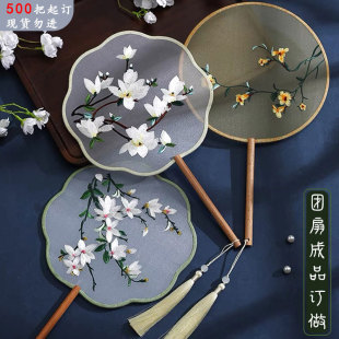 古风半透团扇真丝刺绣双面印绣花扇中国风汉服旗袍舞蹈流苏圆扇子