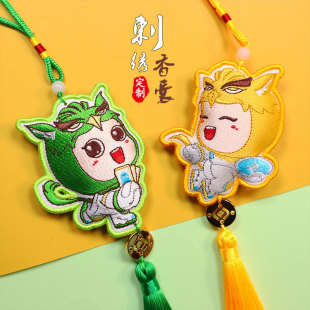定制卡通布艺双面刺绣御守车载香囊球流苏挂件充棉香包吊坠小礼品