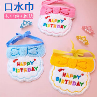 定制婴儿口水巾印绣花饭兜涤纶布卡通刺绣口水兜宠物配饰围巾订做