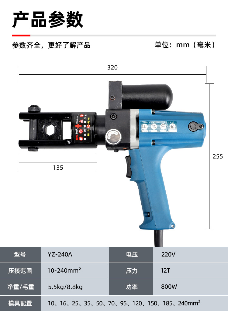 Tang Hidrolik Plug-In Tang Crimping Elektrik YZ-240A Terminal Crimping Cepat Alat Hidrolik Portabel Kecil
