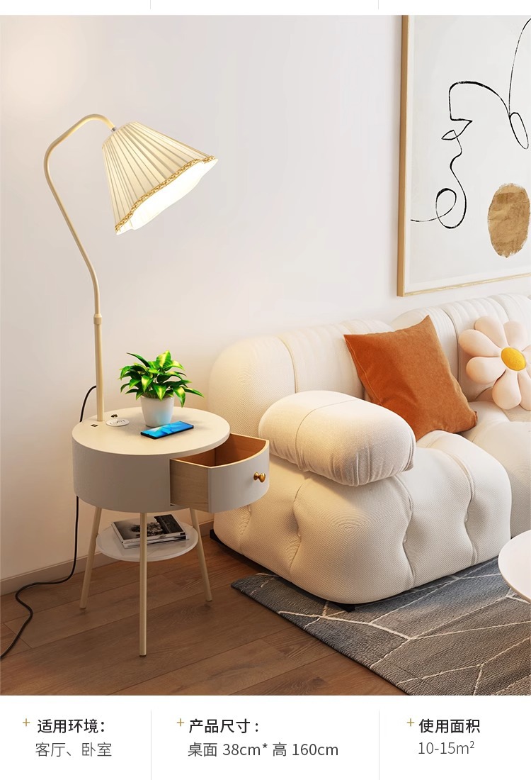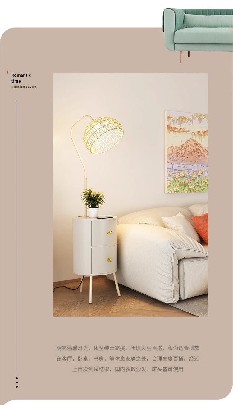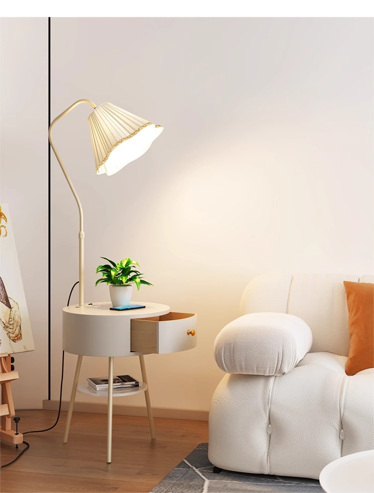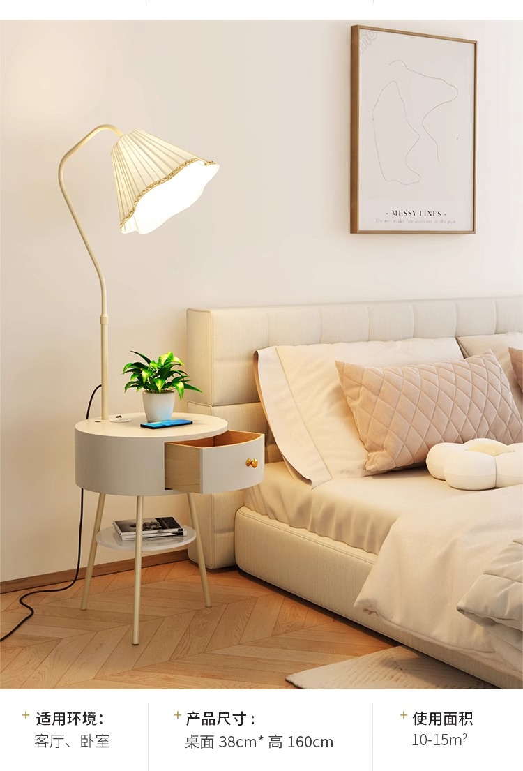 Lampu meja samping tempat tidur gaya krim lampu ruang tamu terintegrasi lampu lantai meja kopi tampilan tinggi dengan lampu