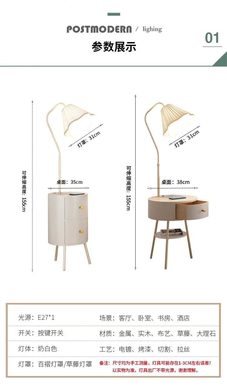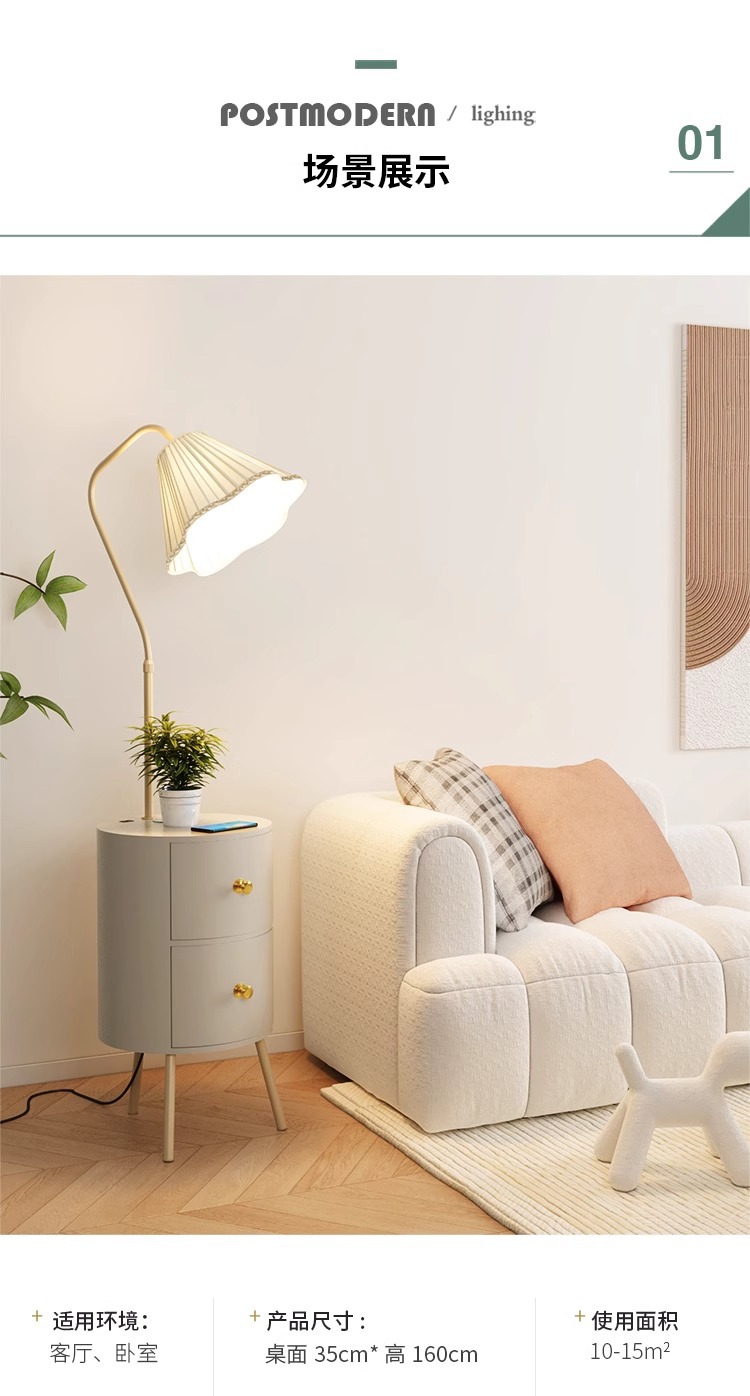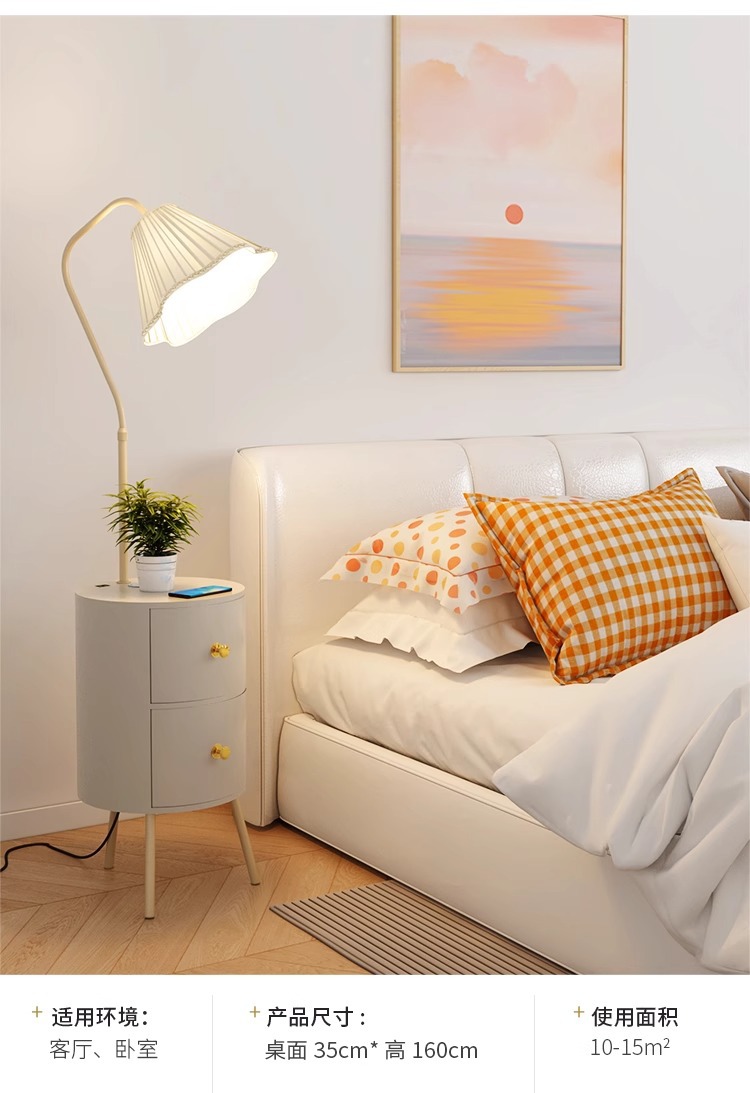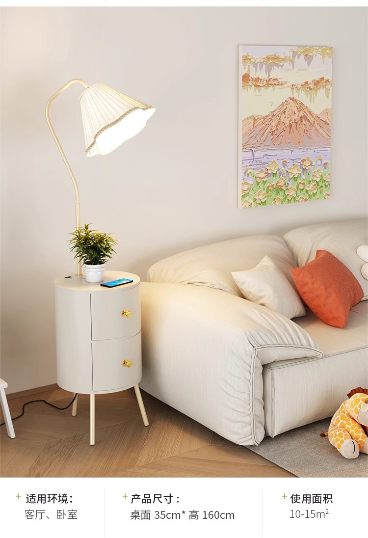 Lampu meja samping tempat tidur gaya krim lampu ruang tamu terintegrasi lampu lantai meja kopi tampilan tinggi dengan lampu