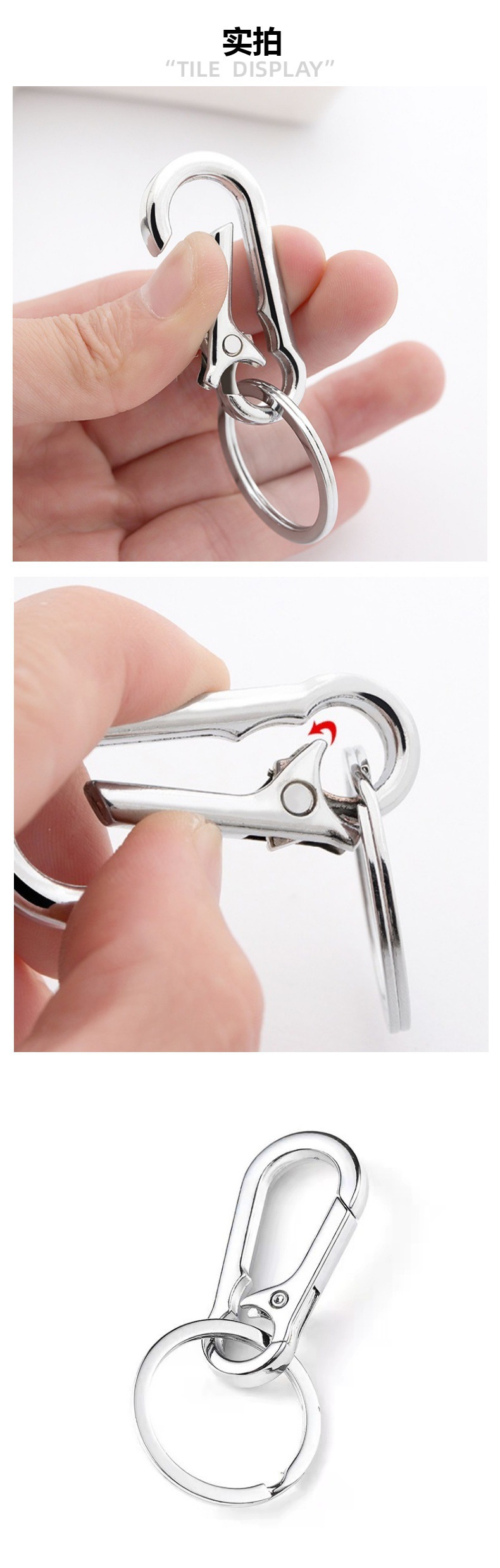 Carabiner cincin datar kreatif, aksesori gantungan kunci logam anti hilang pinggang gantung aksesori kait liontin perhiasan