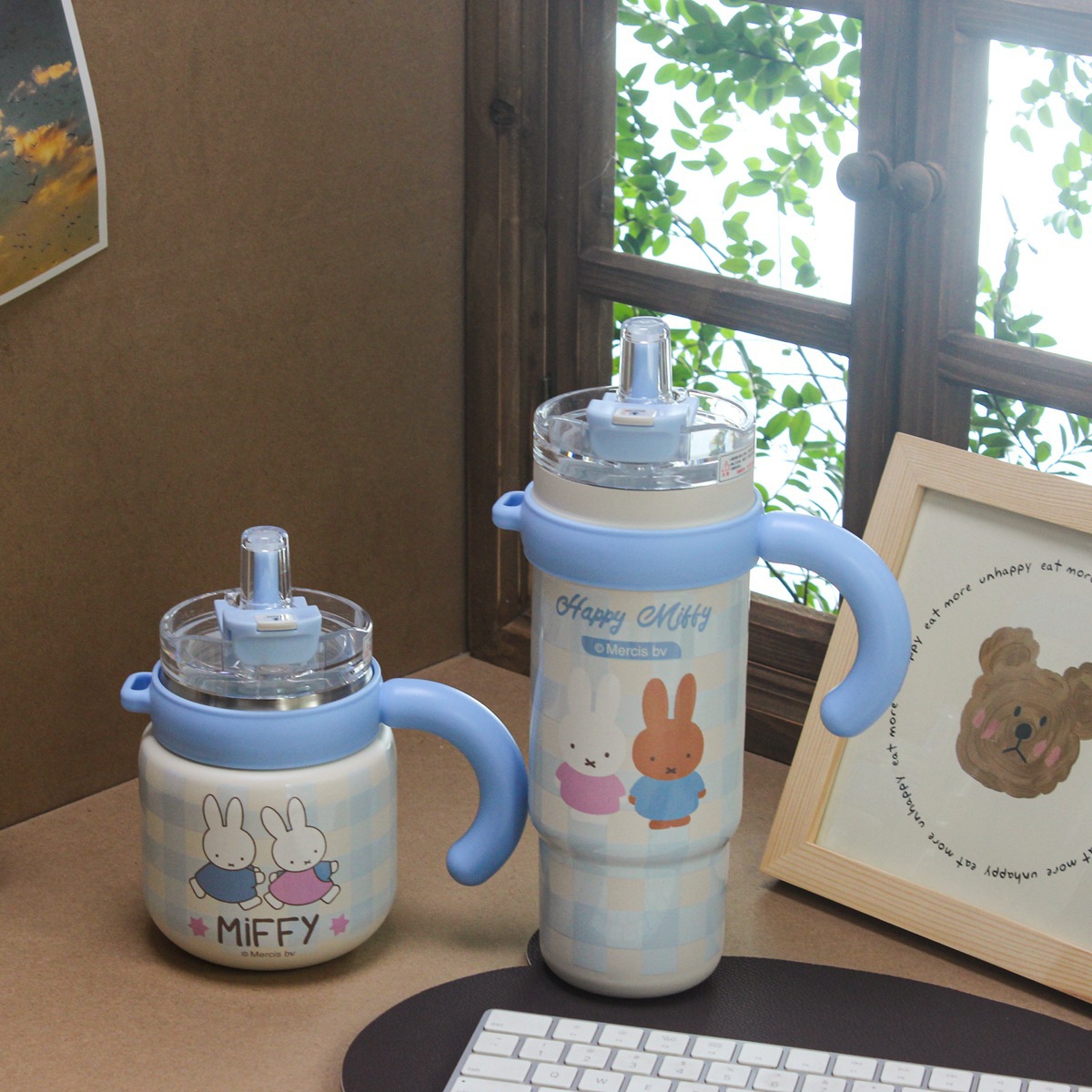 咖啡杯米菲不锈钢吸管杯卡通保温杯便携水杯
