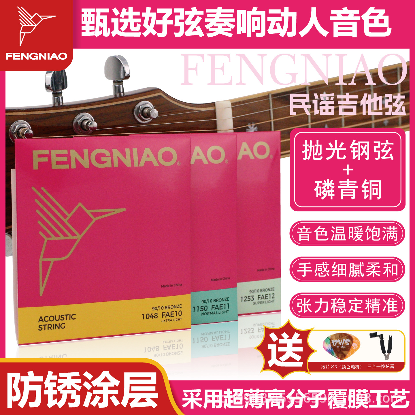 Hummingbird String Guitar Guitar Folk String Gitar Phosphorus Set Enam Aksesori Tidak Mudah Rusak
