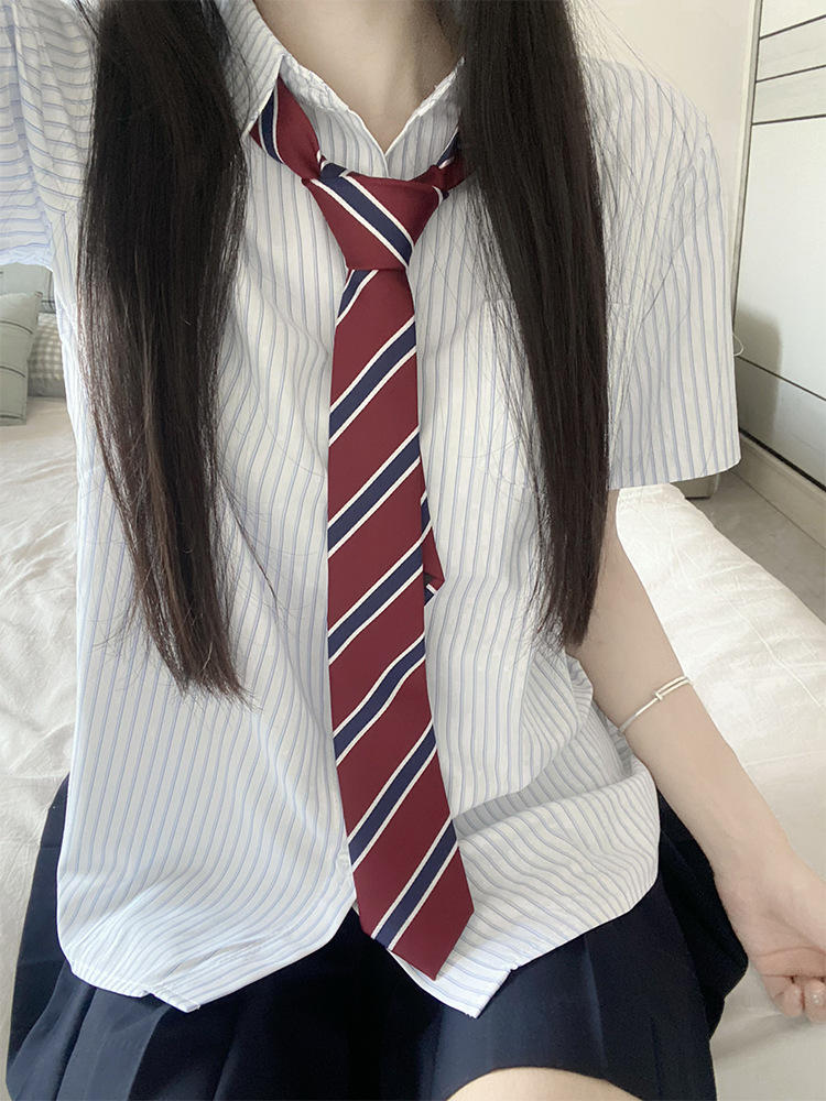 Jk seragam kemeja bergaris tipis lengan pendek wanita biasa gaya Universitas kemeja putih ceruk rasa desain teratas wanita kualitas tinggi
