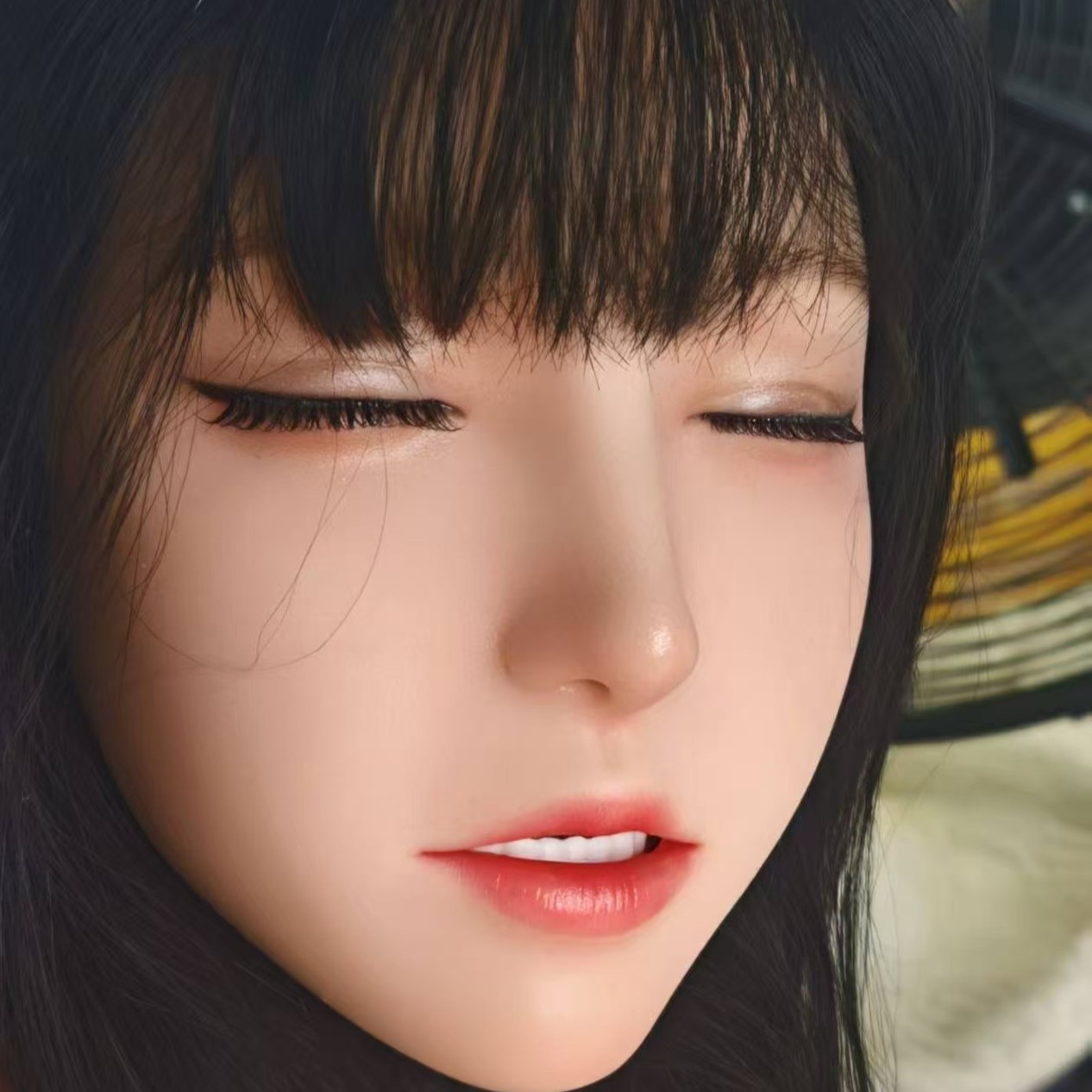 Boneka Silikon Fisik Ukiran Rias Wajah Indah dengan Mulut Dapat Dimasukkan ke dalam Rambut