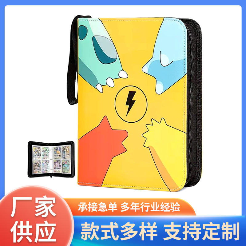 Album kartu Pokémon kapasitas besar 4-slot 9-slot dengan ritsleting, grosir lintas batas dari produsen, terbuat dari kulit PU, album koleksi penyimpanan loose-leaf.