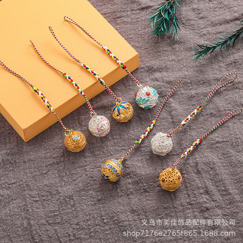Liontin rantai ponsel tembaga murni, bola sachet Hollow-out portabel gaya kuno aromaterapi hanfu pil dupa istana bel cloisonne ornamen